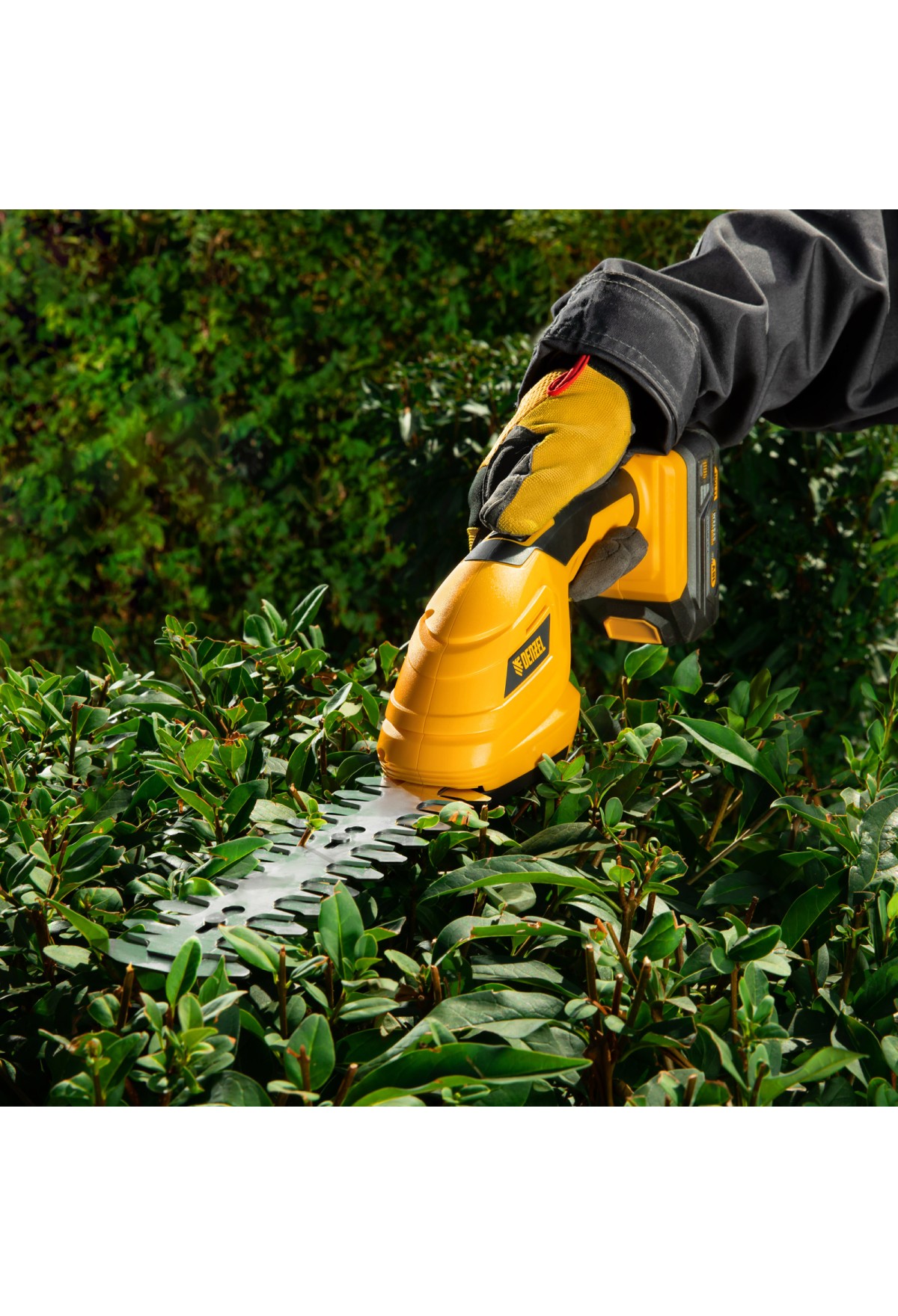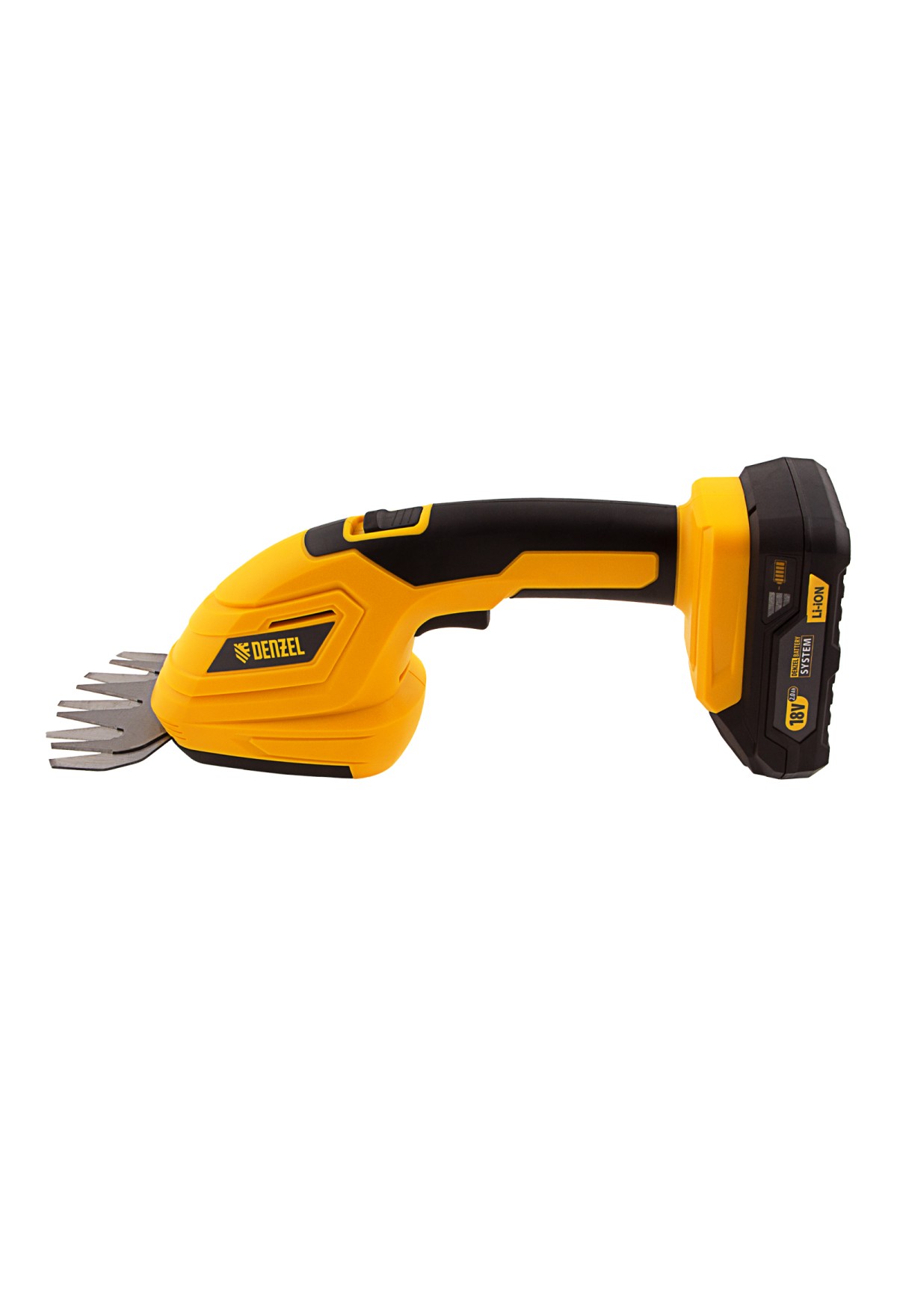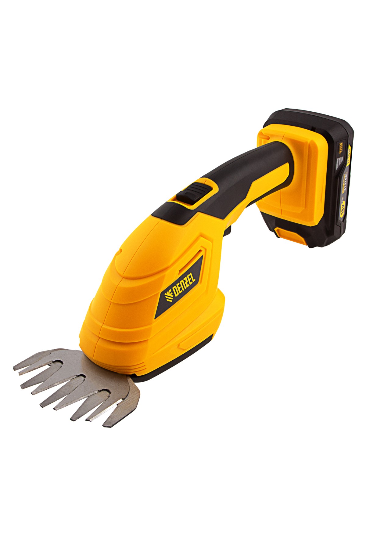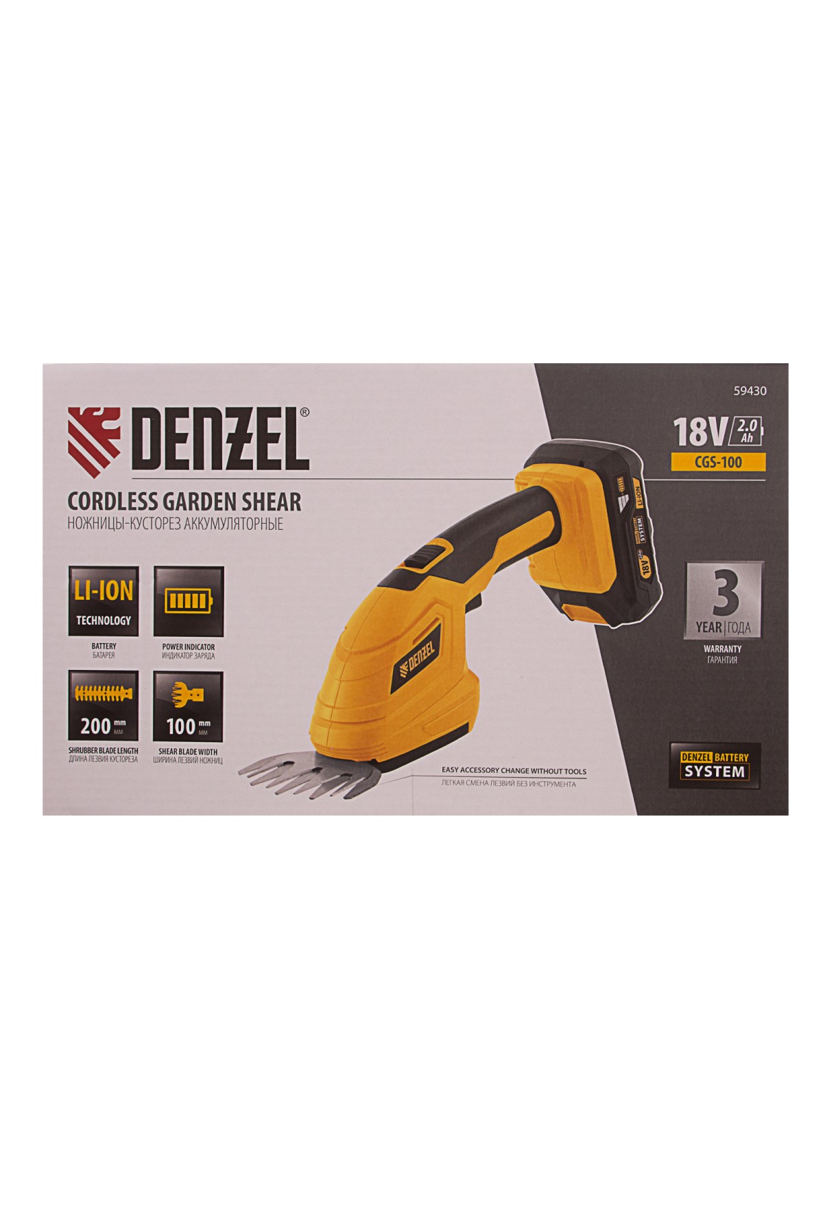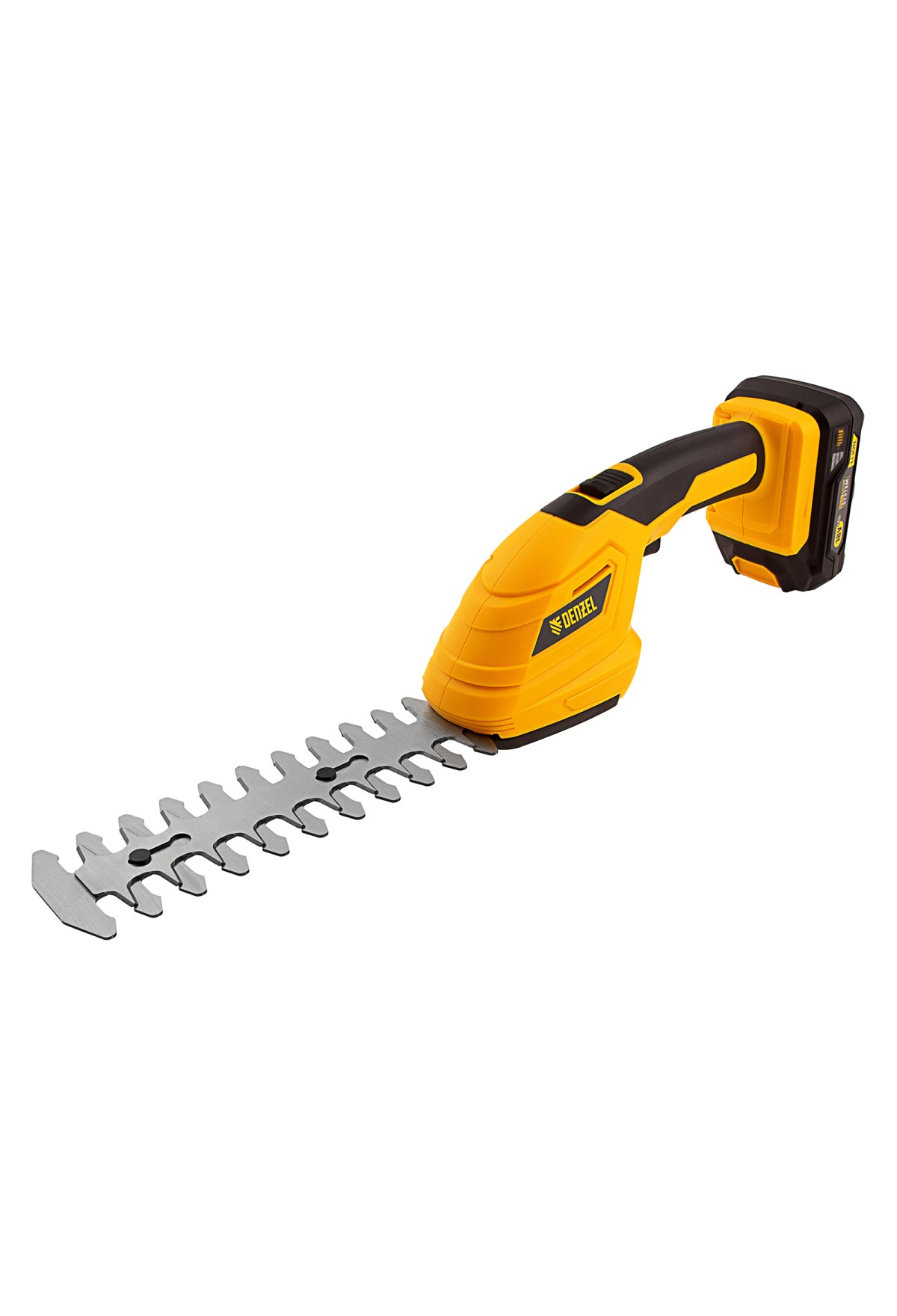 Аккумуляторные ножницы-кусторез Denzel CGS-100 59430 с батареей 18В Li-Ion предназначены для срезания травы, стрижки кустарников, листвы и тонких побегов деревьев диаметром до 8 мм. Инструмент оптимален для создания живой изгороди на дачном участке, создания ландшафтных скульптур из декоративных растений, подравнивания растительности вдоль заборов и бордюров.,Ножницы-кусторез не зависят от сети электропитания, а значит, использовать их можно в отдаленных участках сада. Аккумулятор Denzel 18В Li-Ion с интеллектуальной системой распознавания нагрузки обеспечивает стабильную работу инструмента со скоростью 1200 ход/мин и эффективное выполнение поставленных задач.
