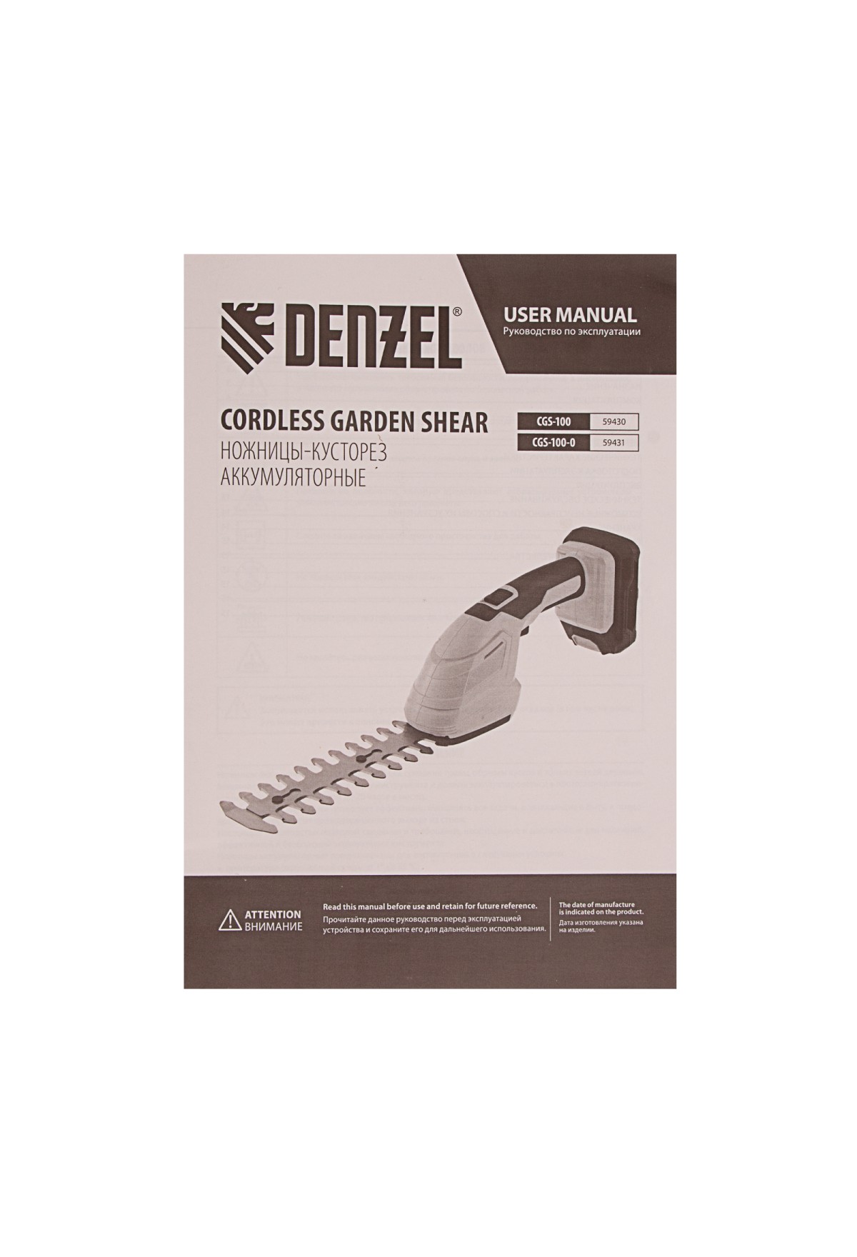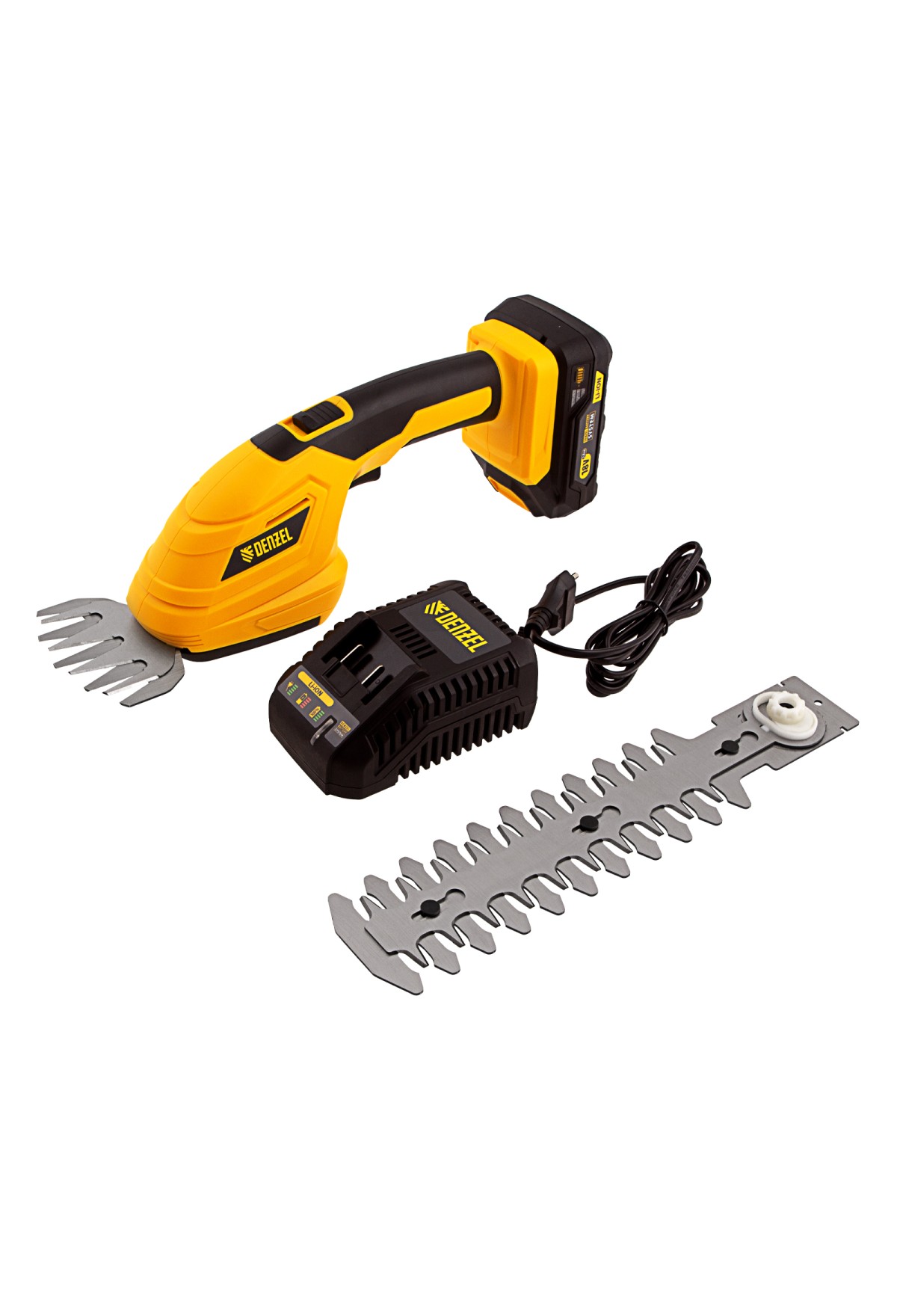 | Комплектация | Ножницы-кусторез аккумуляторные - 1 штЛезвие для кустарника с чехлом - 1 штЛезвие для травы с чехлом - 1 штБатарея аккумуляторная - 1 штУстройство зарядное - 1 штРуководство по эксплуатации с гарантийным талоном - 1 шт |