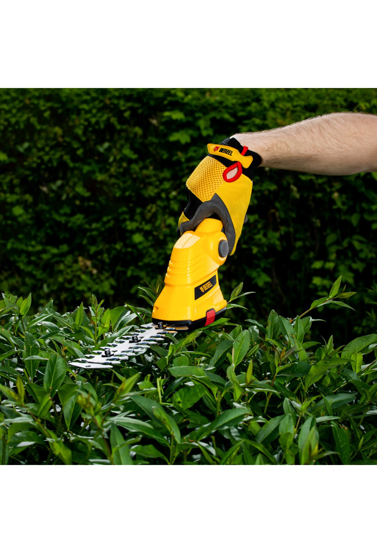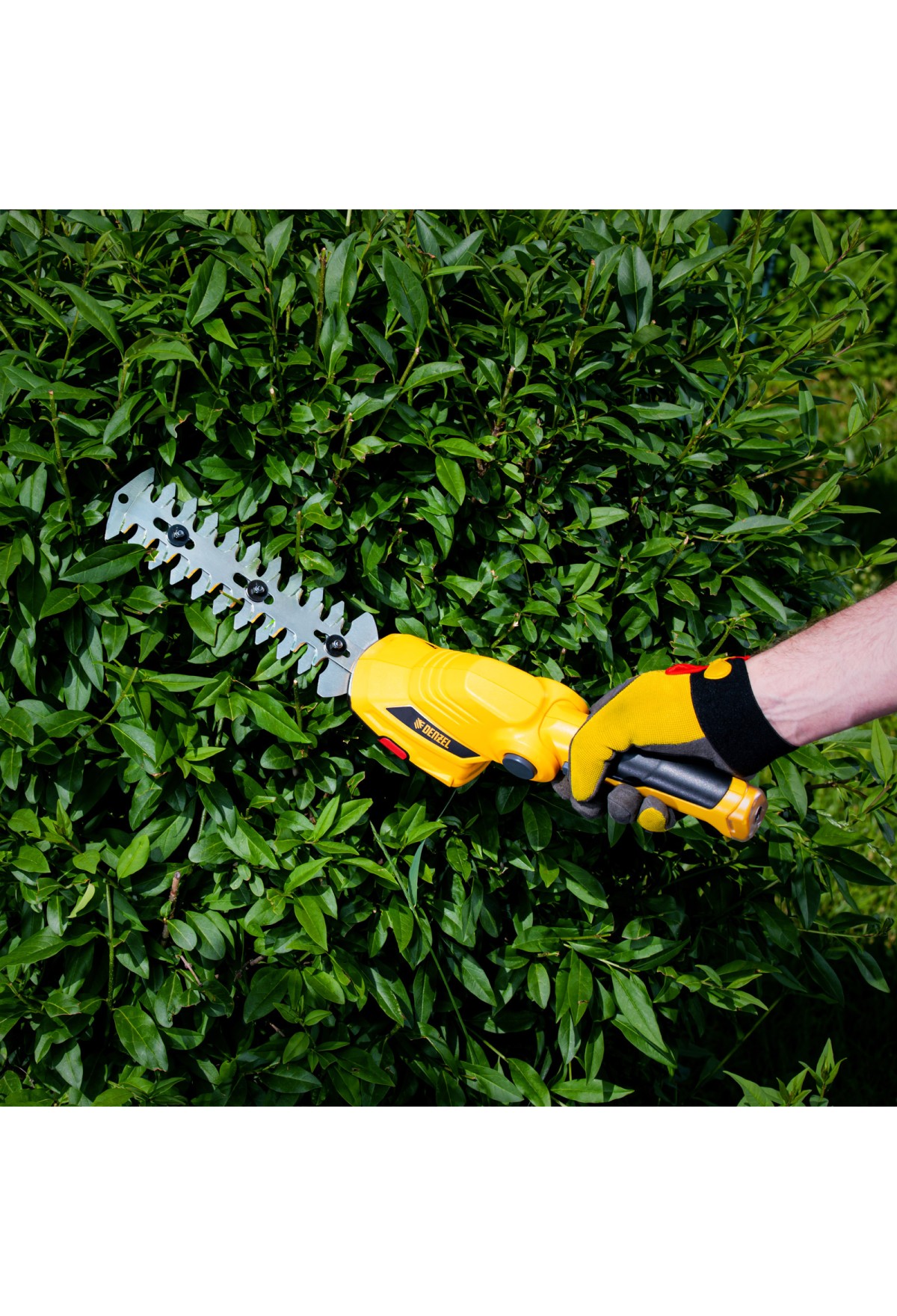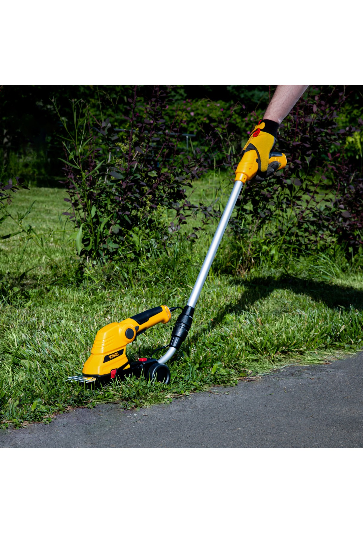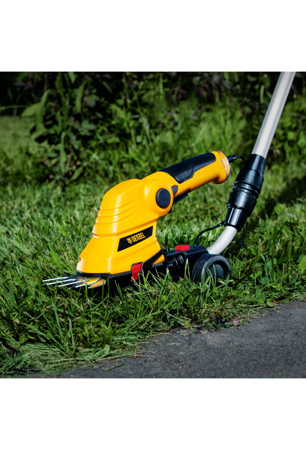 Аккумуляторные ножницы-кусторез Denzel G801E 968157 с телескопической штангой, с Li-Ion батареей емкостью 1,5 Ач и напряжением 7,2 В, используются для ухода за садовым участком. Поставляются с двумя насадками: для подрезания газонной травы и для обрезки кустов и тонких веток деревьев. Небольшой вес 1,1 кг и съемная штанга с колесным блоком обеспечивают комфортное использование ножниц-кустореза.
