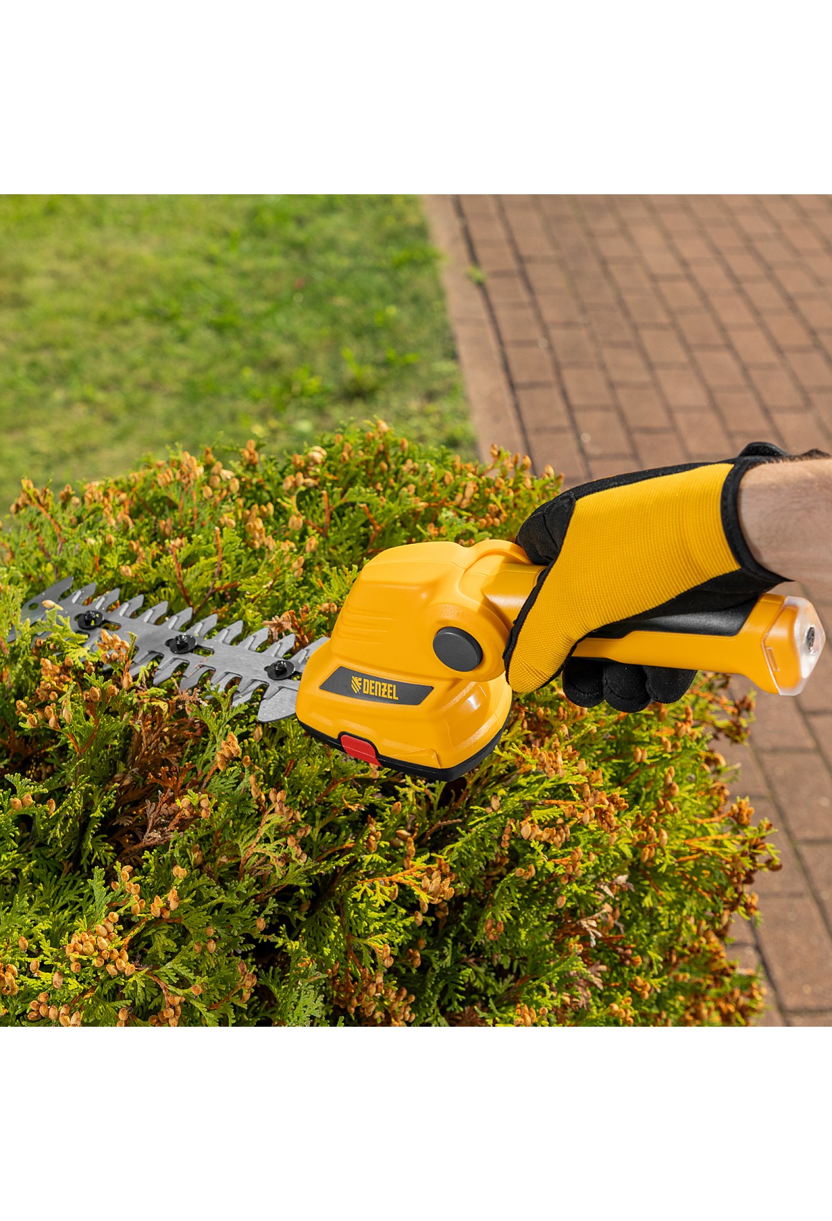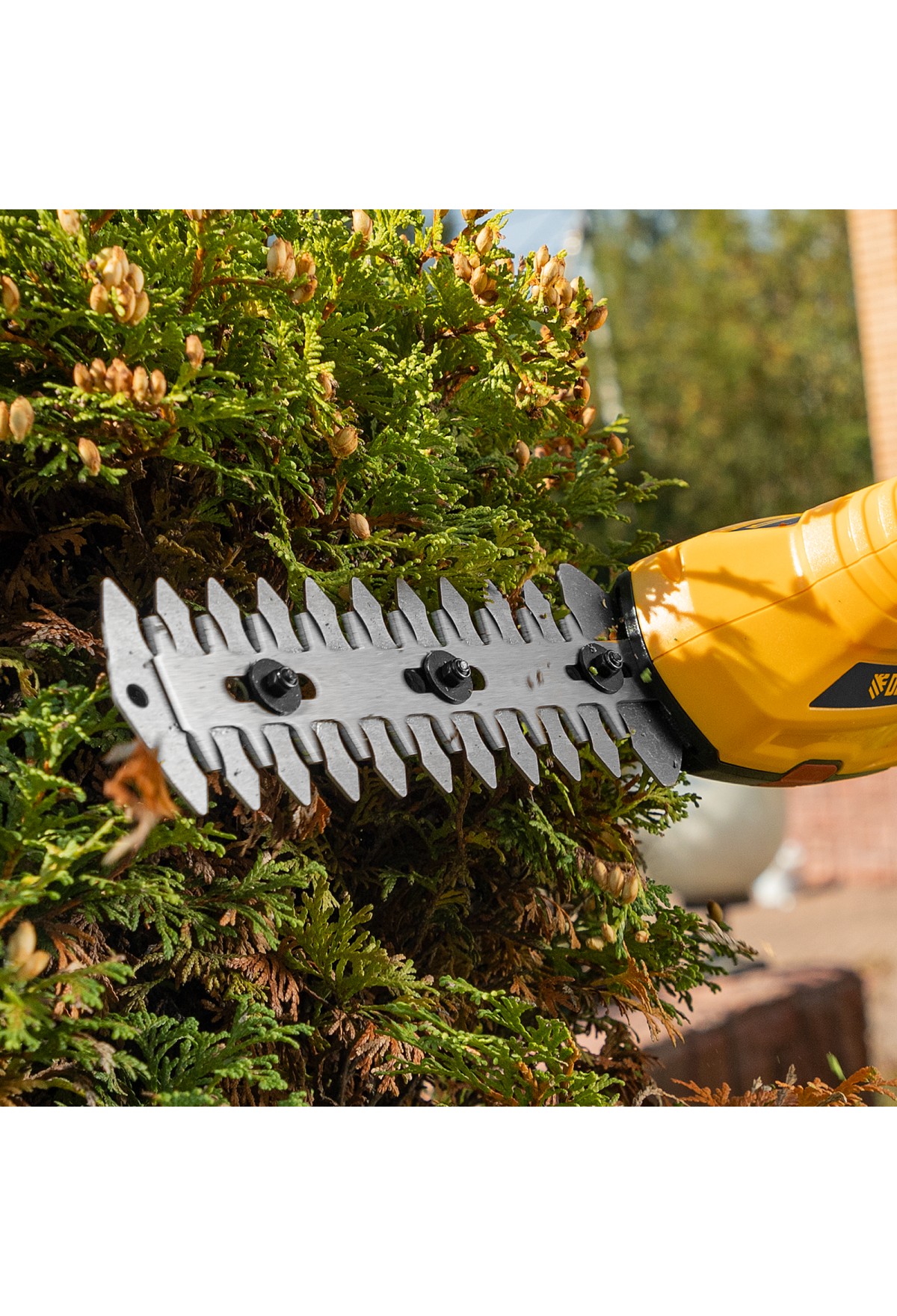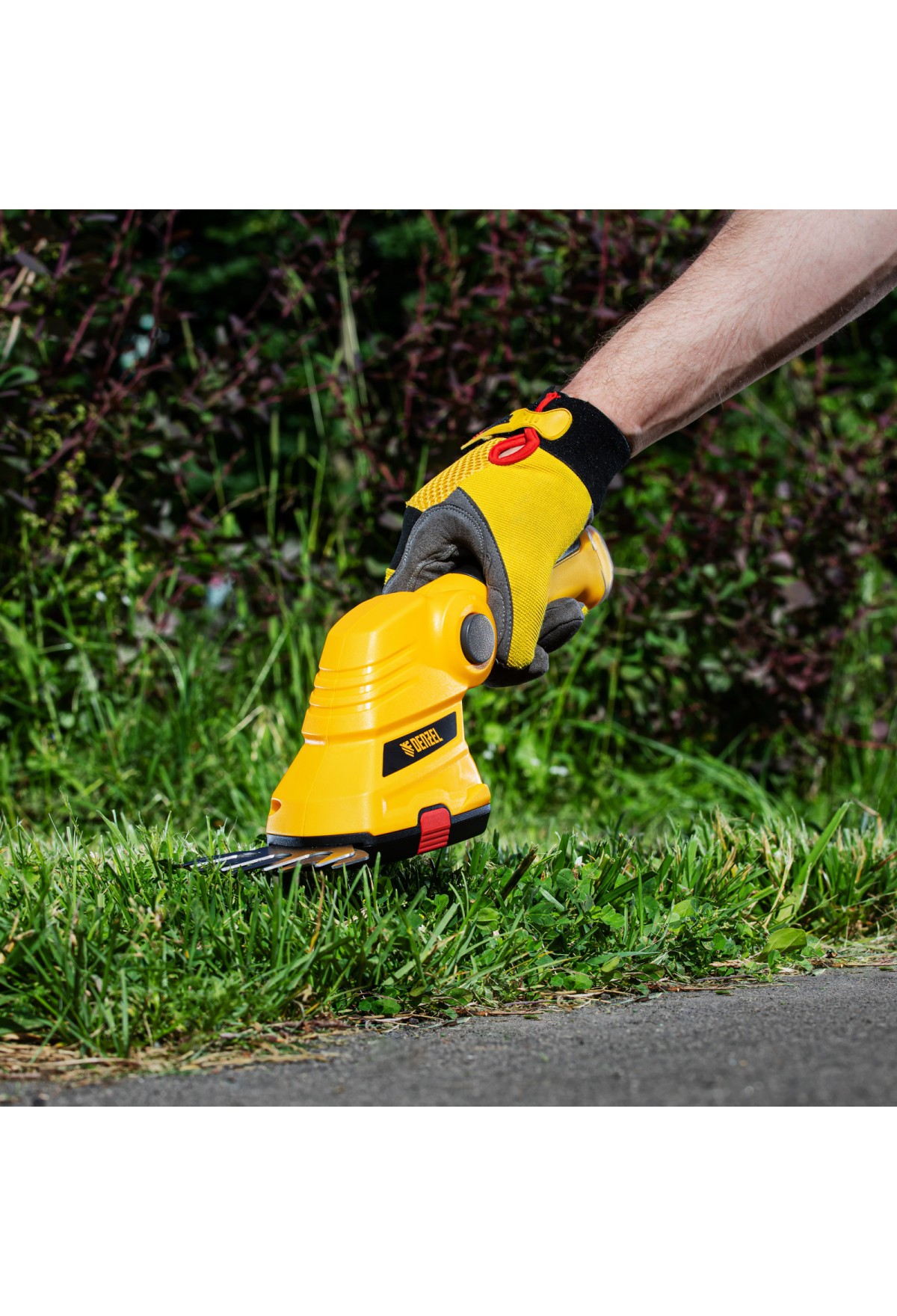 - Долговечность — медная обмотка двигателя устойчива к перегреву и обеспечивает стабильную работу ножниц-кустореза даже при высоких нагрузках.