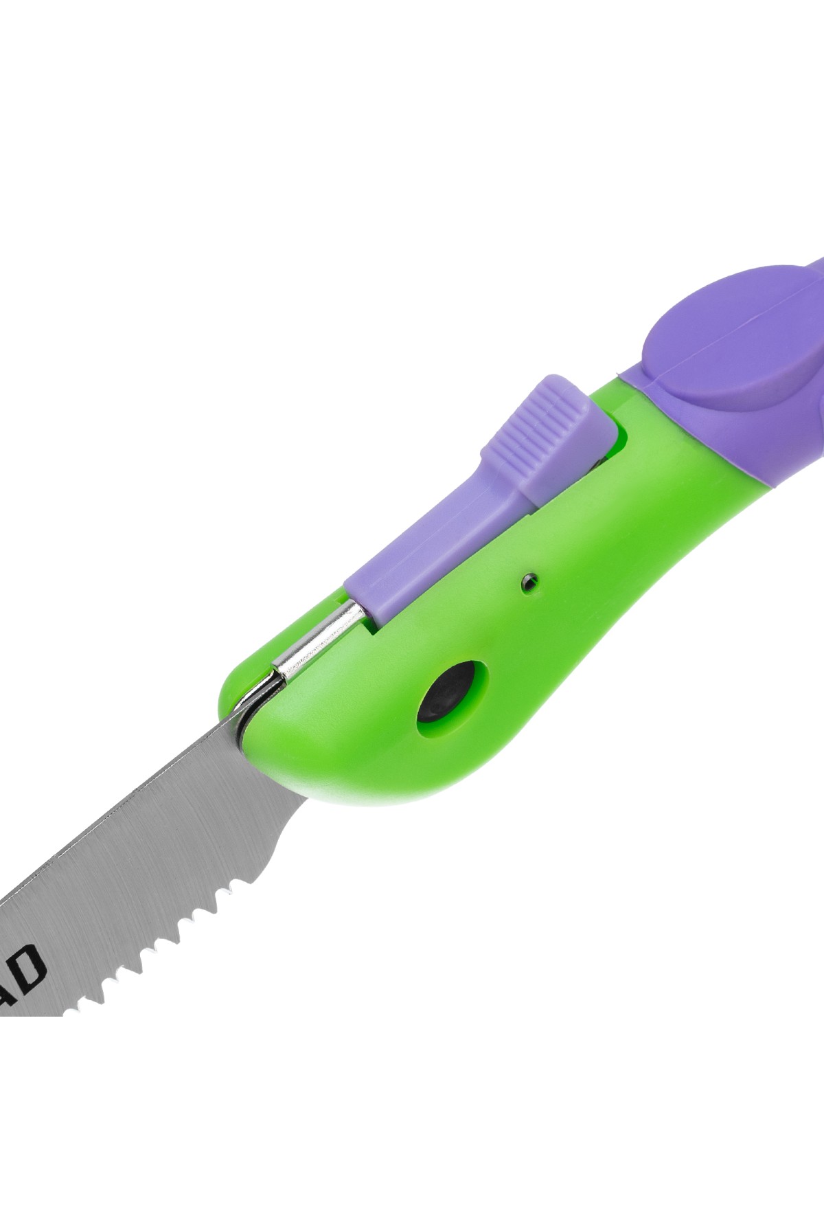 - Безопасное хранение и транспортировка — кнопочный фиксатор надежно удерживает лезвие в сложенном состоянии.