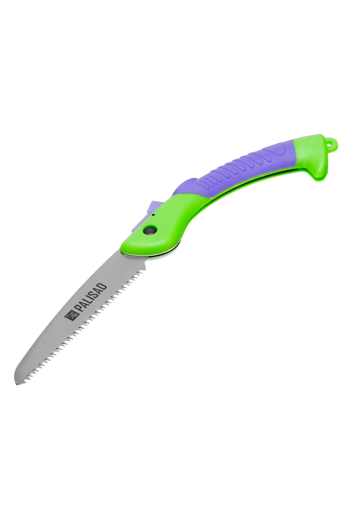 Садовая складная пила Palisad 604145 с рабочей частью длиной 150 мм и пластиковой обрезиненной рукояткой — удобный и компактный инструмент, который будет полезен не только в саду или на строительной площадке, но и в походе. Позволяет обрезать ветки деревьев, выполнять продольный и поперечный рез сухой или сырой древесины. Зубья с трехгранной заточкой обеспечивают эффективную работу при минимальных усилиях со стороны пользователя.