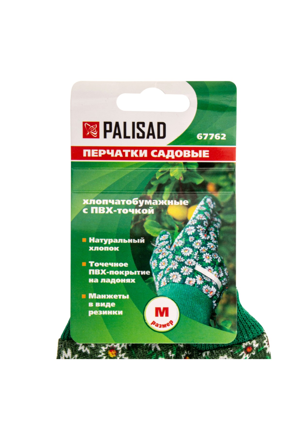Перчатки садовые х/б ткань с ПВХ точкой, манжет, M Palisad