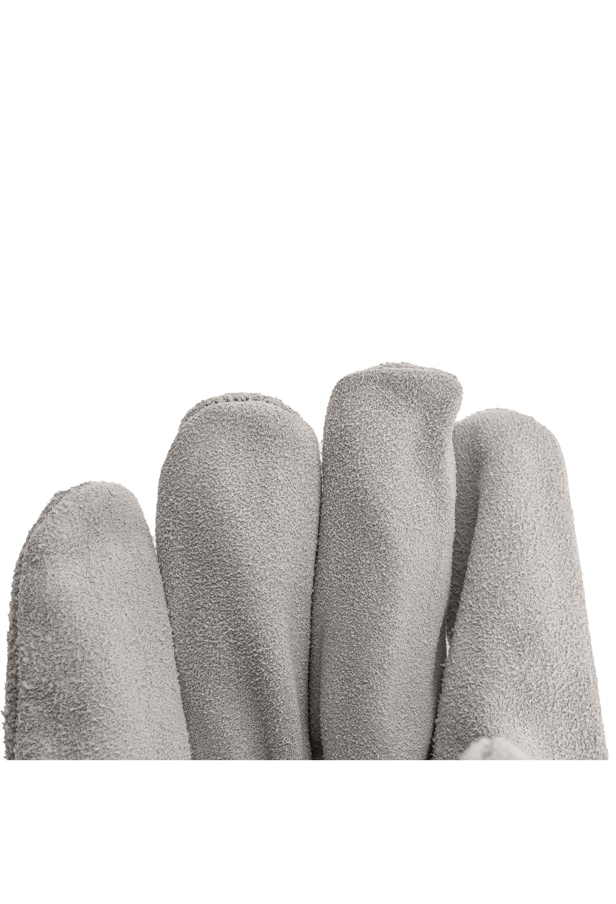 - Перчатки изготовлены из коровьего спилка, прочного и устойчивого к истиранию.