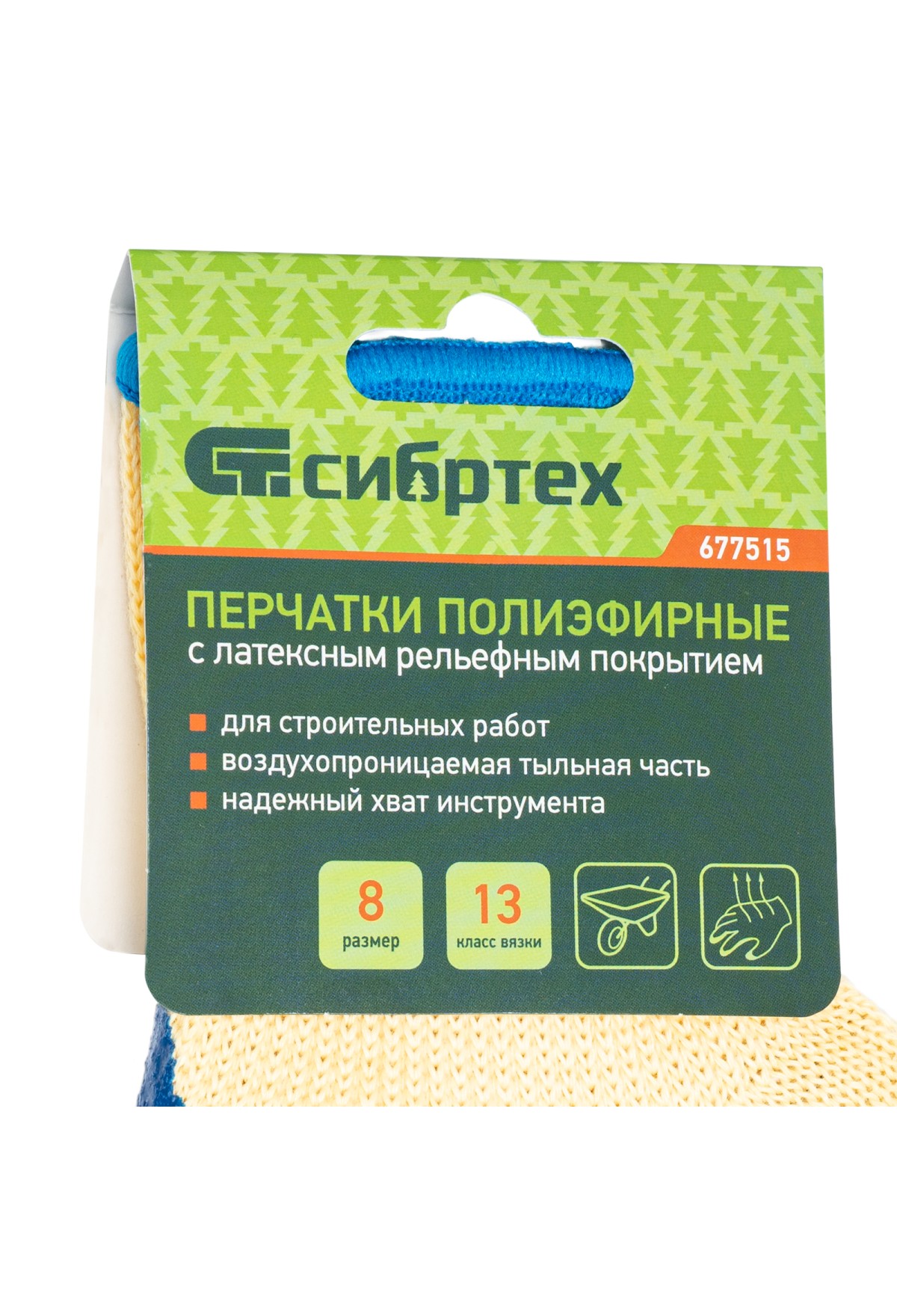 Трикотажные полиэфирные перчатки Сибртех с латексным рельефным покрытием предназначены для защиты рук от механических воздействий и общепроизводственных загрязнений при выполнении хозяйственных, ремонтных, строительных работ.
