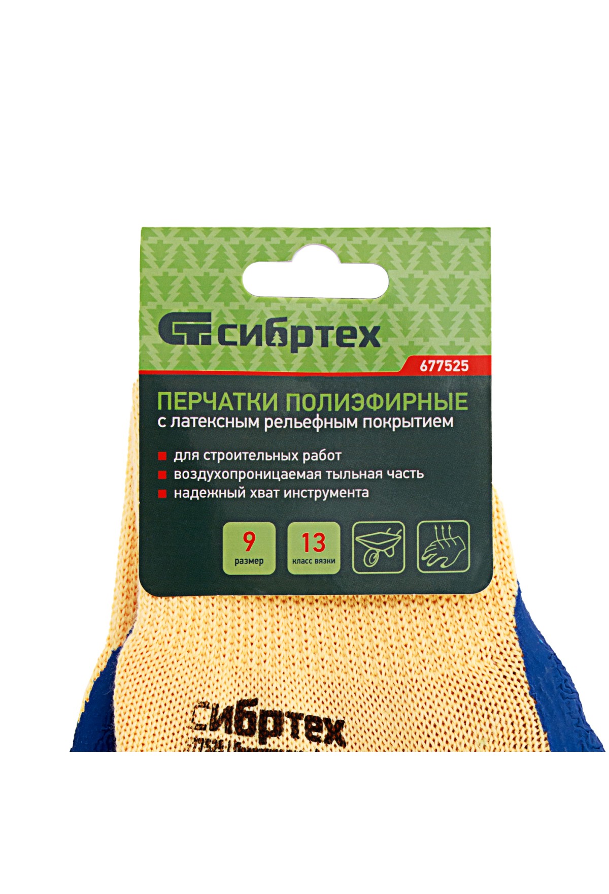 Технические характеристики Перчатки трикотажные, полиэфирные, латексное рельефное покрытие, размер 9// Сибртех
