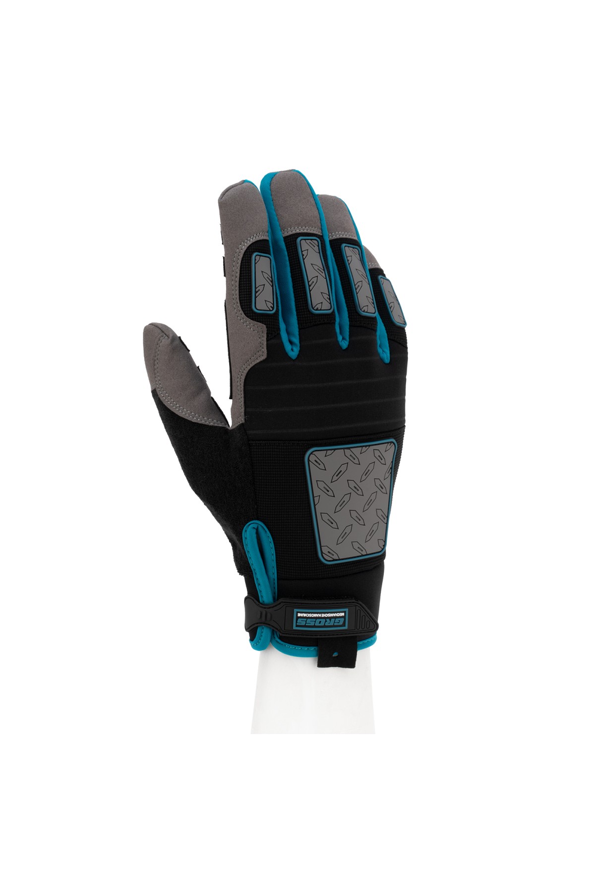 Универсальные усиленные перчатки Gross DELUXE 90325 с защитными накладками, размера L (9), служат для защиты рук от механических повреждений и образования мозолей. Тонкие и износостойкие защитные накладки из ПВХ на тыльной стороне ладони и пальцах дополнительно предохраняют руки от механических повреждений. Формованные накладки на ладонях препятствуют появлению синяков и ссадин. Изделия могут использоваться при проведении строительных и ремонтных работ, а также во время занятий спортом или активного отдыха.