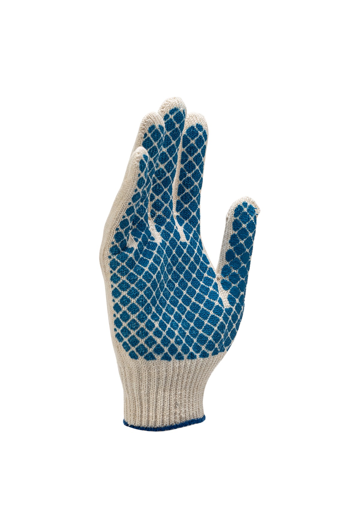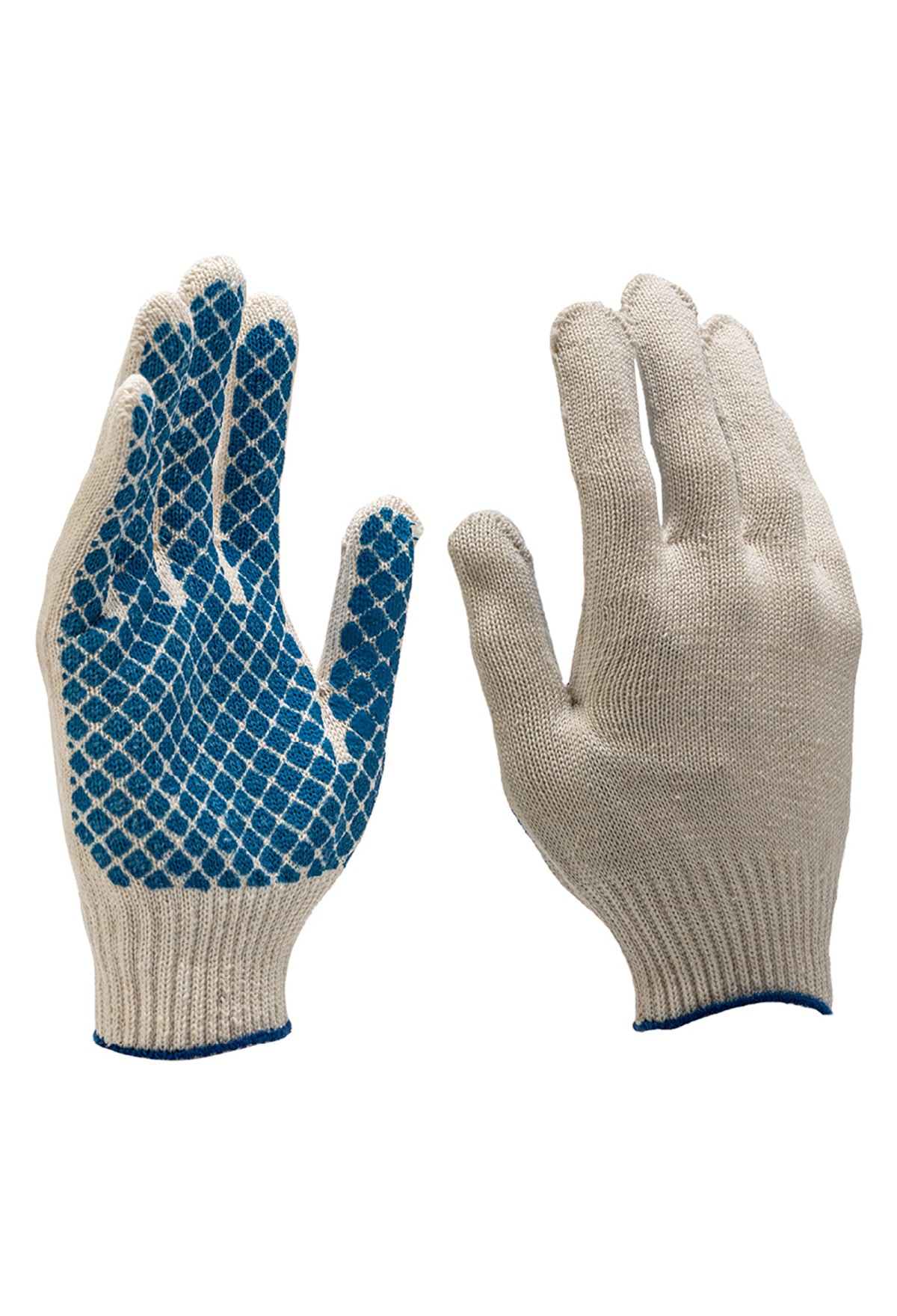 Хлопчатобумажные перчатки 67713 с ПВХ-покрытием «Шахматный облив», 10 класса вязки, защищают руки от царапин, порезов, ссадин, мозолей и загрязнений. Тонкая пряжа сохраняет чувствительность пальцев, поэтому перчатки подходят для выполнения точных работ. Благодаря ПВХ-покрытию ладонной части инструменты не выскальзывают из рук. Перчатки используют в строительстве, на производстве, во время ремонта помещений и обслуживания автомобилей. Пригодятся они и в хозяйстве.