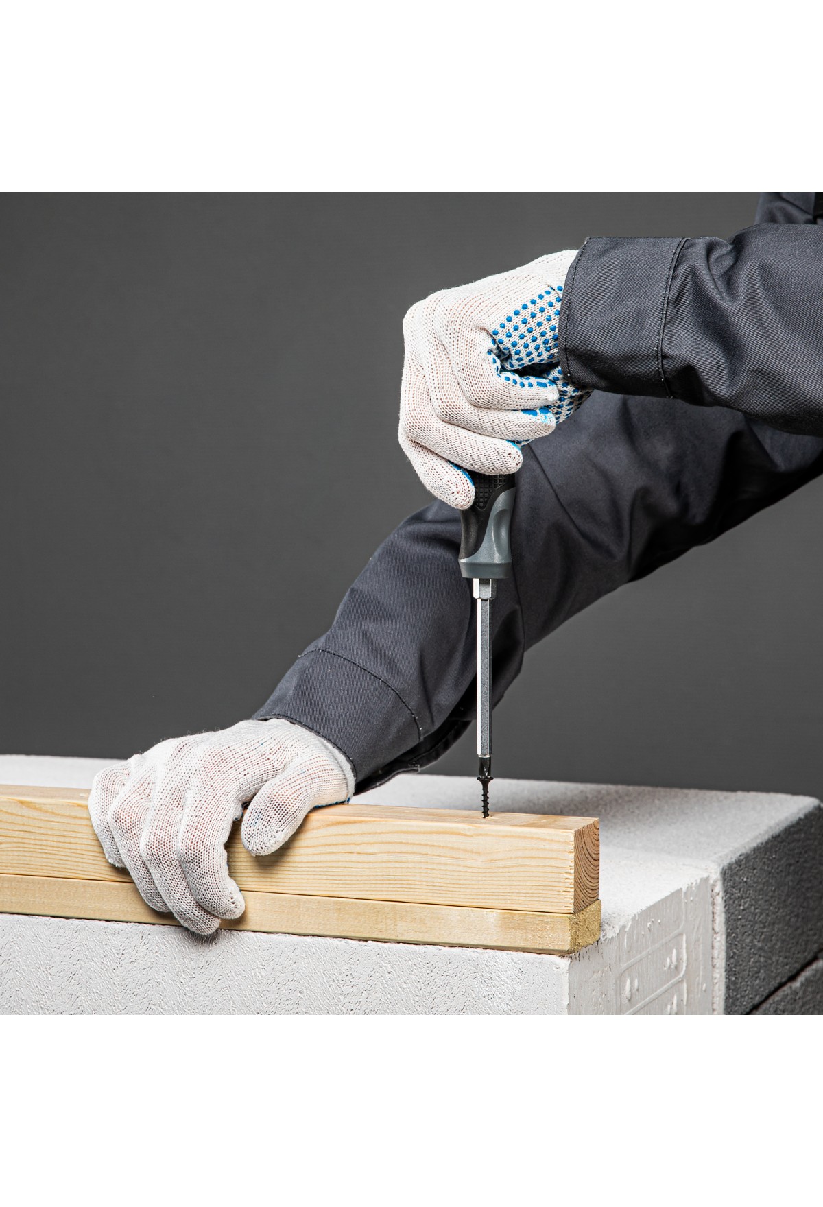 • На ладонной части перчатки имеется ПВХ-покрытие, обеспечивающее надежный захват различных инструментов и мелких деталей.