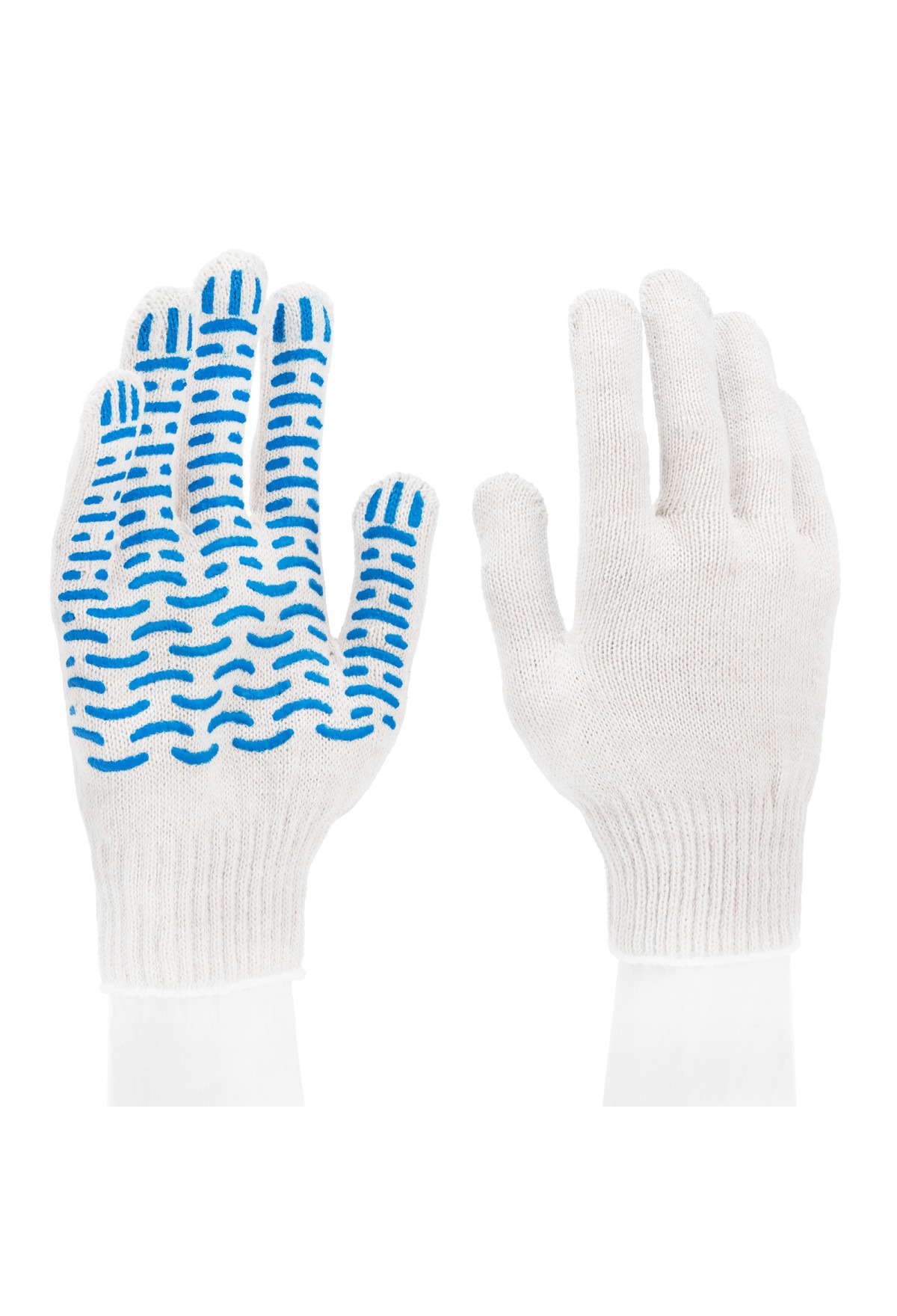Хлопчатобумажные перчатки 67777 с ПВХ-покрытием «Волна», 10 класса вязки, защищают руки от царапин, порезов, ссадин, мозолей и загрязнений. Тонкая пряжа сохраняет чувствительность пальцев, поэтому перчатки подходят для выполнения точных работ. Благодаря ПВХ-покрытию ладонной части инструменты не выскальзывают из рук. Перчатки используют в строительстве, на производстве, во время ремонта помещений и обслуживания автомобилей. Пригодятся они и в хозяйстве.