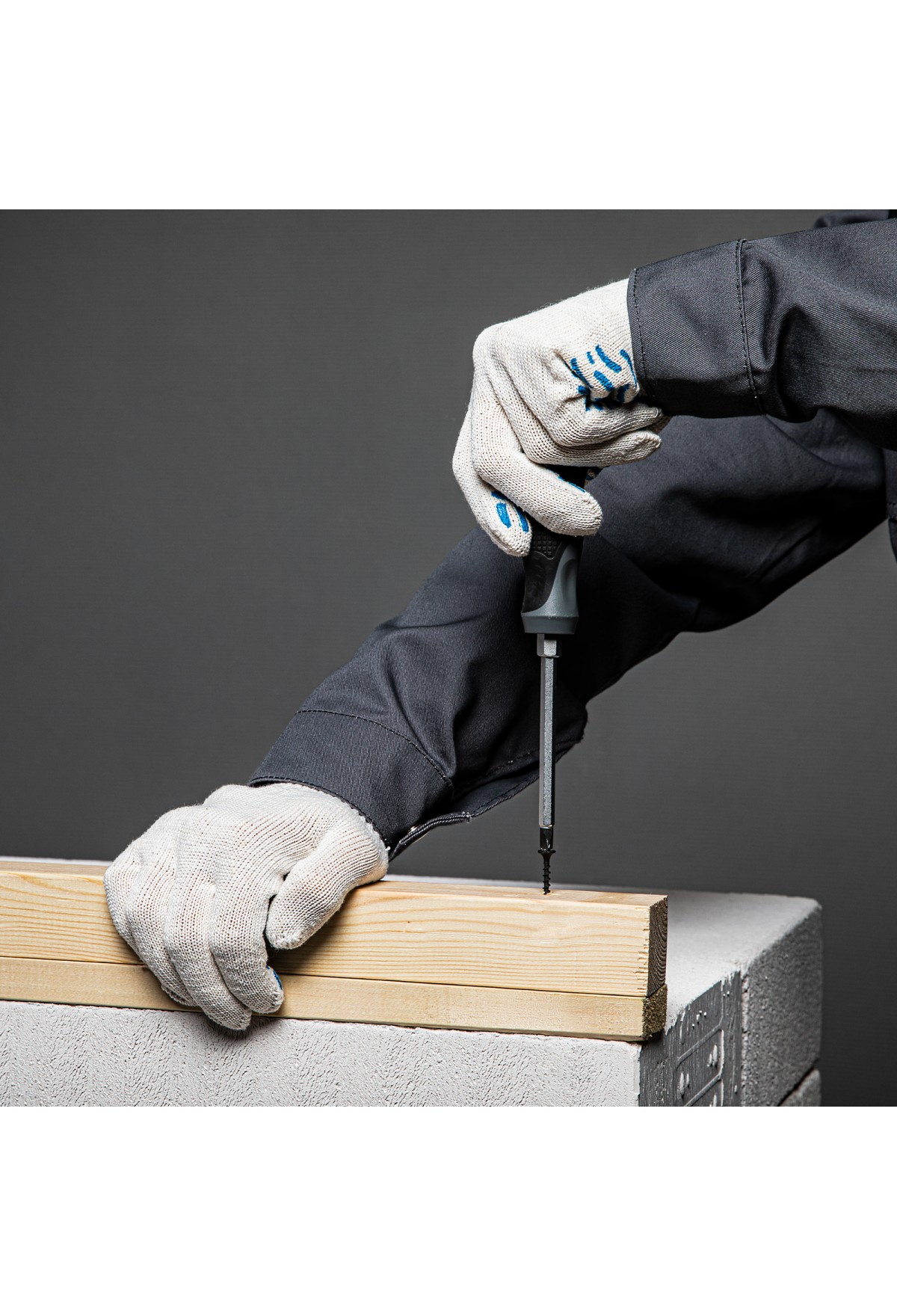 Хлопчатобумажные перчатки 67716 с ПВХ-покрытием «Волна», 10 класса вязки, защищают руки от царапин, порезов, ссадин, мозолей и загрязнений. Тонкая пряжа сохраняет чувствительность пальцев, поэтому перчатки подходят для выполнения точных работ. Благодаря ПВХ-покрытию ладонной части инструменты не выскальзывают из рук. Перчатки используют в строительстве, на производстве, во время ремонта помещений и обслуживания автомобилей. Пригодятся они и в хозяйстве.