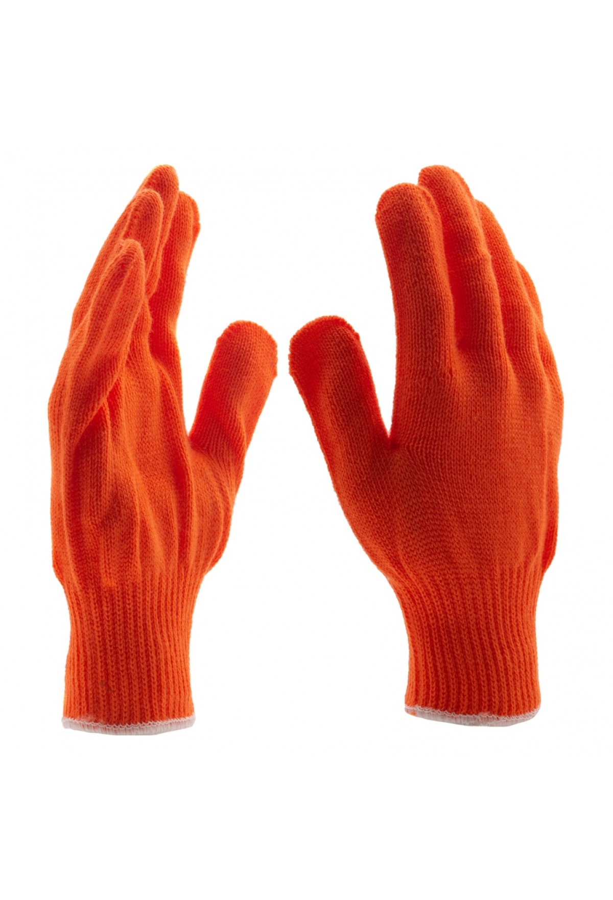 Трикотажные перчатки Сибртех 68659 оранжевого цвета, из акрила, обработанные оверлоком, используют во время проведения строительных и монтажных работ. Они надежно защищают руки от холода, а также от травм и загрязнений. Эластичные перчатки легко надеваются и не стесняют движения пальцев по время работы.