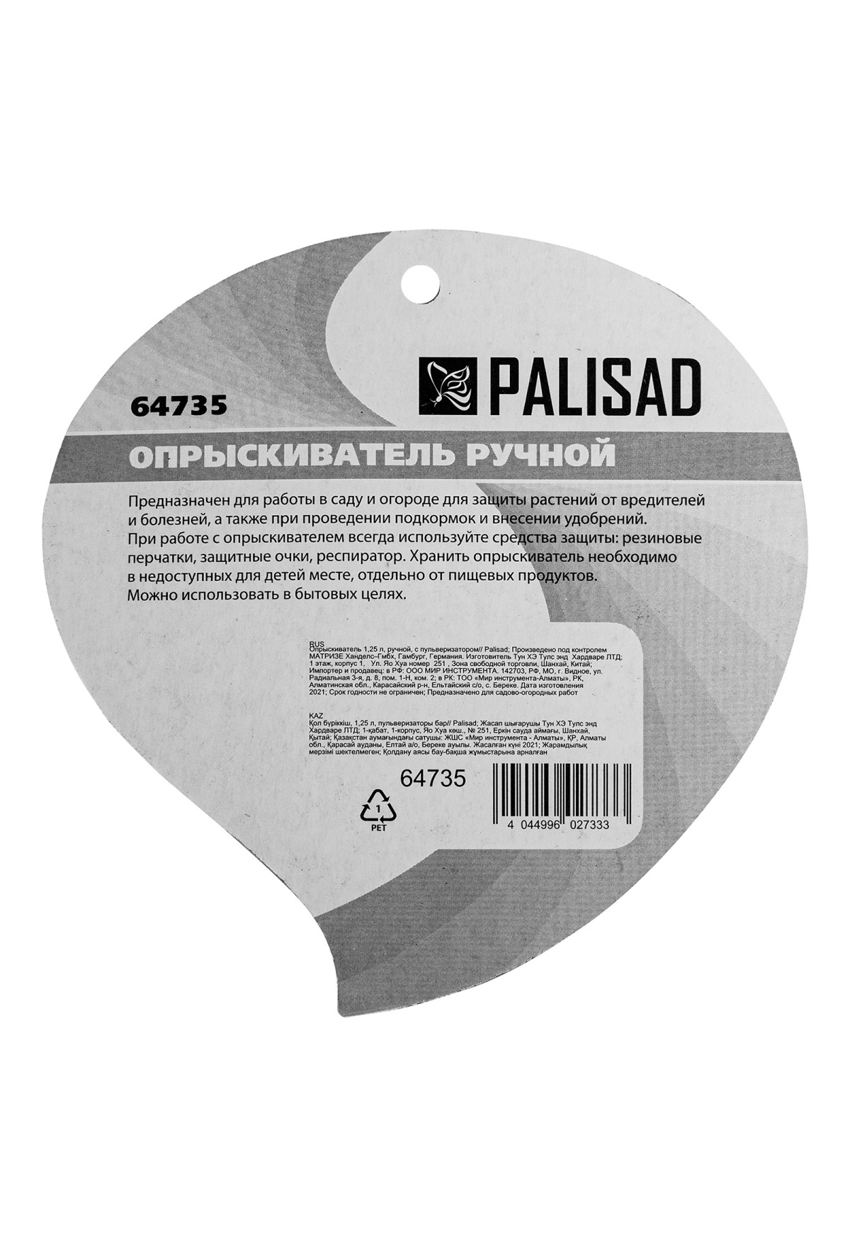 | Комплектация | Опрыскиватель ручной - 1 шт |