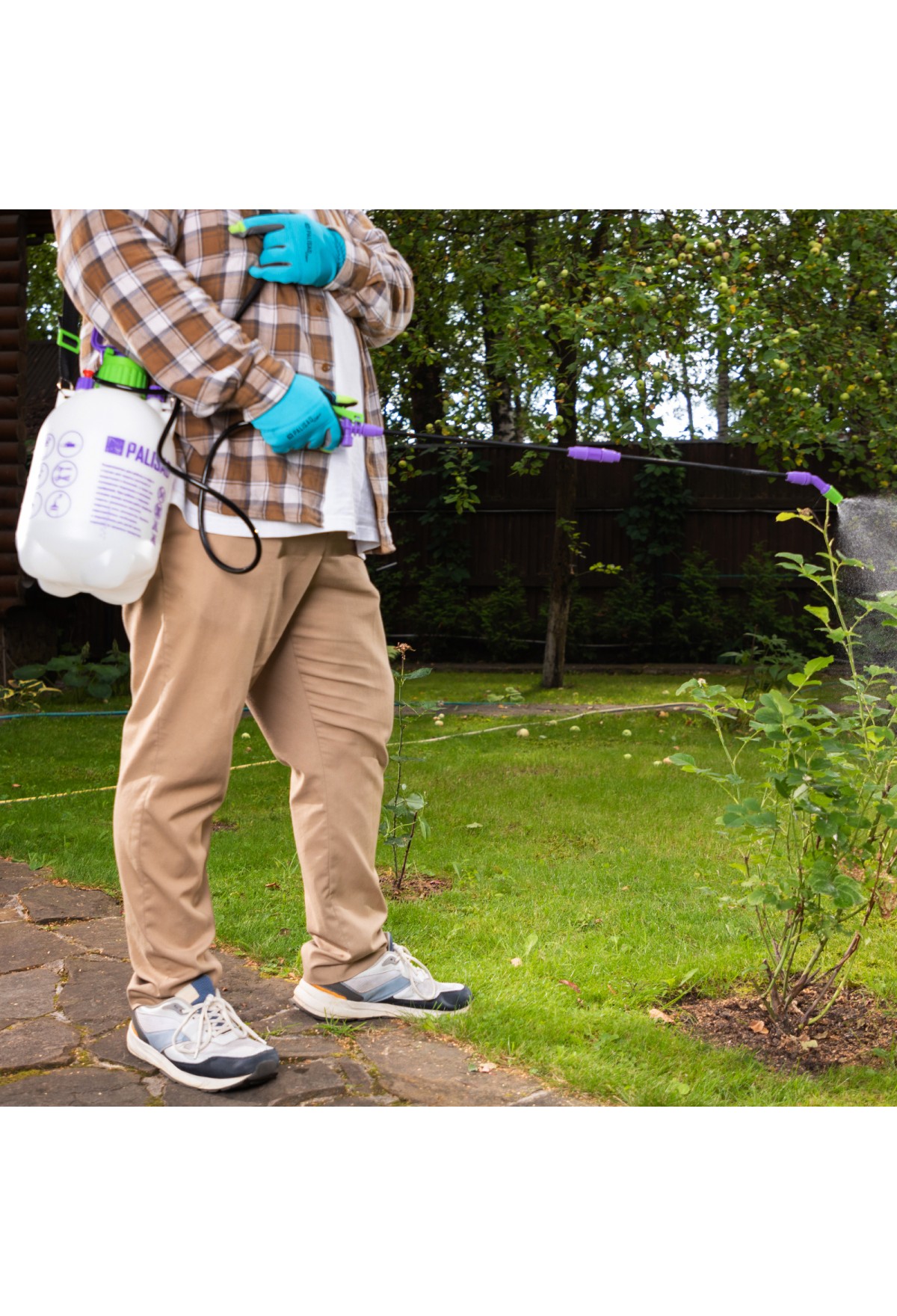 - Продуманная конструкция — опрыскиватель можно перемещать за ручку помпового насоса.