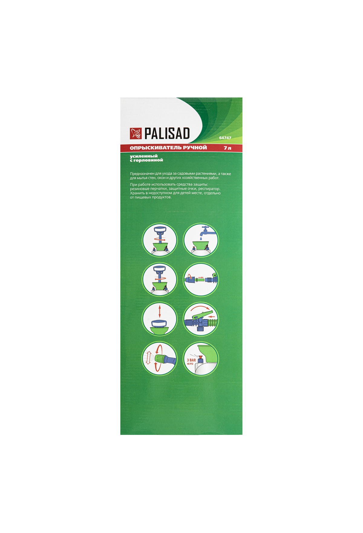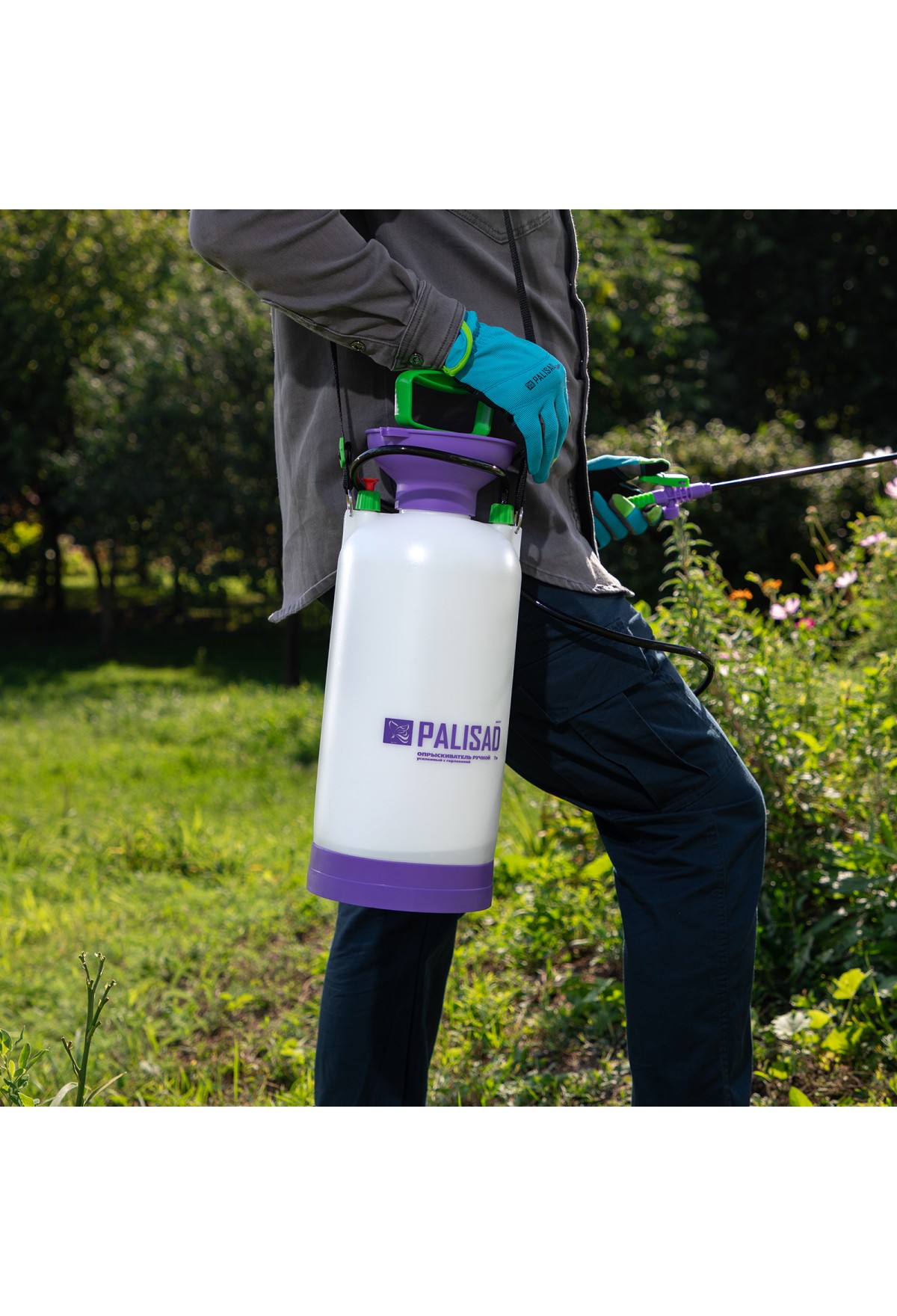 Ручной усиленный опрыскиватель Palisad 64747 вместительностью 7 л, с горловиной, насосом, шлангом и разбрызгивателем, используется для защиты садово-огородных культур от вредителей и болезней, а также для внесения удобрений. Предназначен для работы на дачном участке. Опрыскиватель с широким дном сохраняет устойчивость на горизонтальной поверхности. Также его можно повесить на плечо, освободив руки. Бак обладает повышенной прочностью за счет усиленных стенок и дна. Благодаря широкой горловине можно быстро и аккуратно наполнить емкость раствором.
