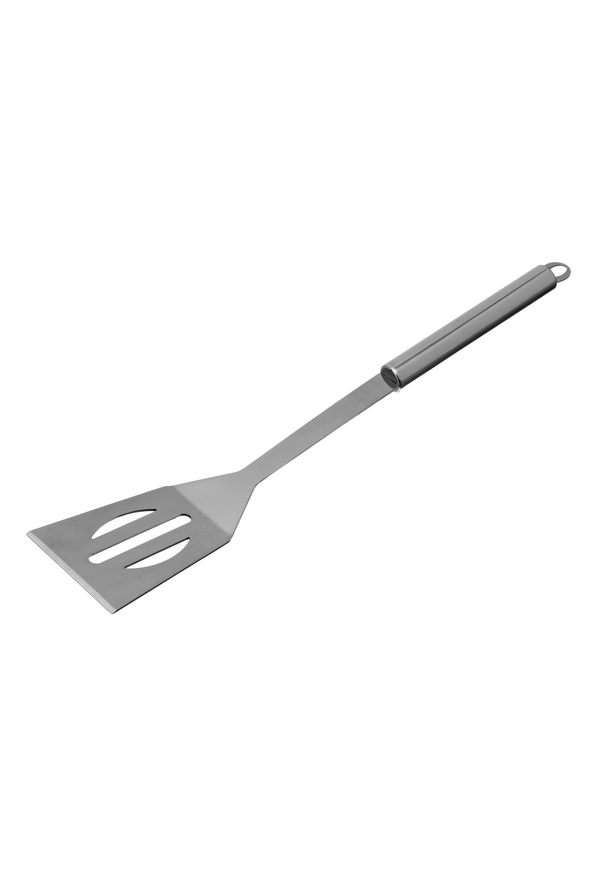 Лопатка для барбекю Palisad Camping 69643 длиной 37 см, из нержавеющей стали, позволяет приготовить мясо, рыбу и овощи на гриле или в мангале. С ее помощью можно удобно и безопасно переворачивать и снимать продукты.
