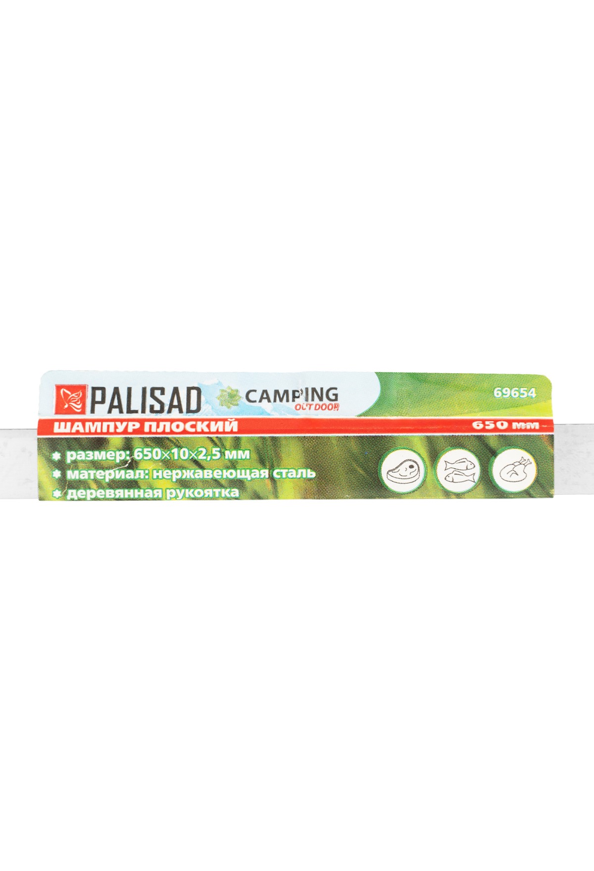 Технические характеристики Шампур плоский, 650 х 10 х 2.5 мм, с деревянной лакированной рукояткой, нержавеющая сталь, Camping Palisad