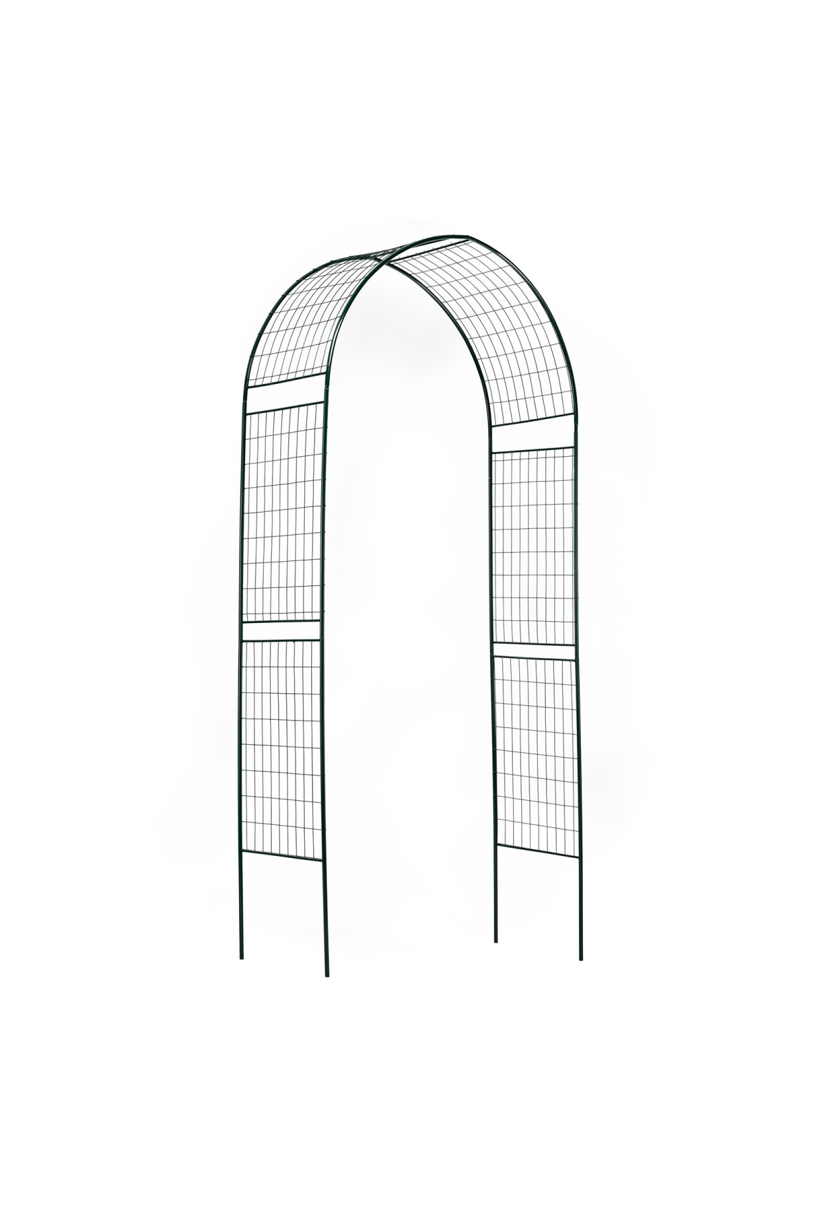 Садовая разборная арка «Сетка широкая» 69124 размером 2,5 х 0,5 х 1,2 м предназначена для поддержки вьющихся садовых растений. Она пригодится садоводам и огородникам для ухода за высокорослыми растениями и для зонирования участка. Арку высотой 250 см также можно использовать в качестве элемента декора у садовых дорожек.