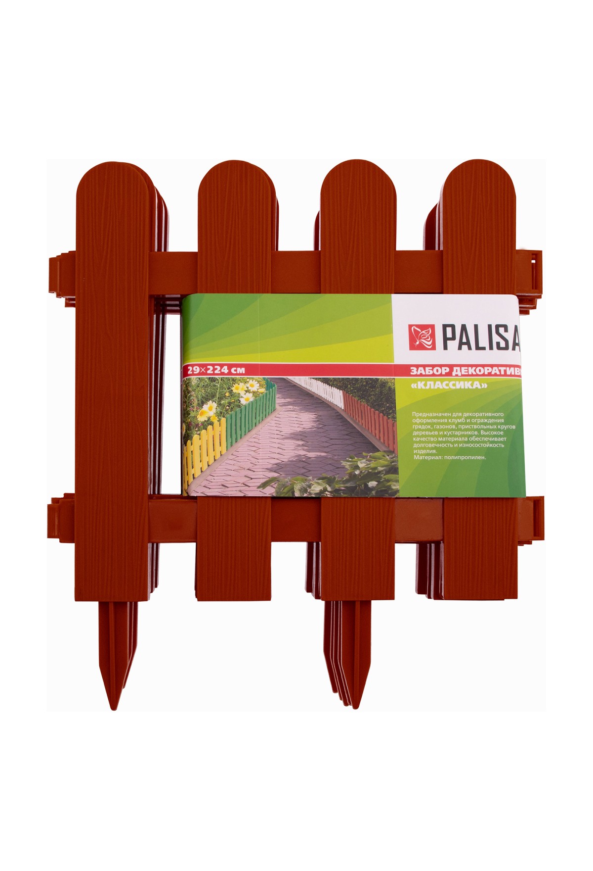 Декоративный забор Palisad «Классика» 65009 терракотового цвета, размером 29 х 224 см, состоит из 7 секций и позволяет выделить отдельные участки придомовой или дачной территории. Используется для декоративного оформления цветников, ограждения дорожек, грядок и газонов.