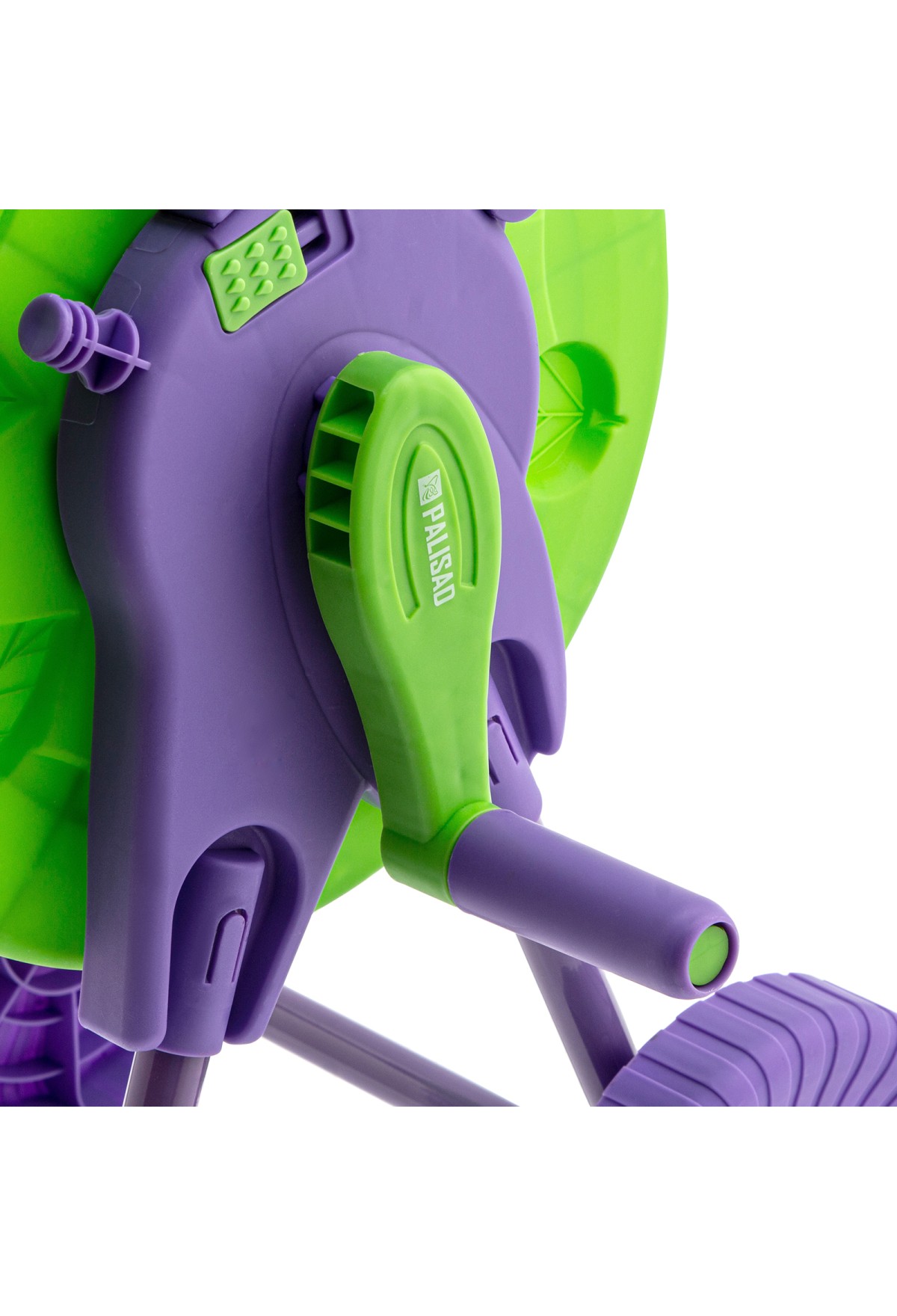 Катушка Palisad 67403 на колесах упрощает работу с поливочным шлангом длиной до 30 м. Позволяет регулировать его длину во время работ на участке, а также обеспечивает бережное хранение, предотвращая перекручивание и запутывание. Боковая рукоятка облегчает разматывание и наматывание шланга.