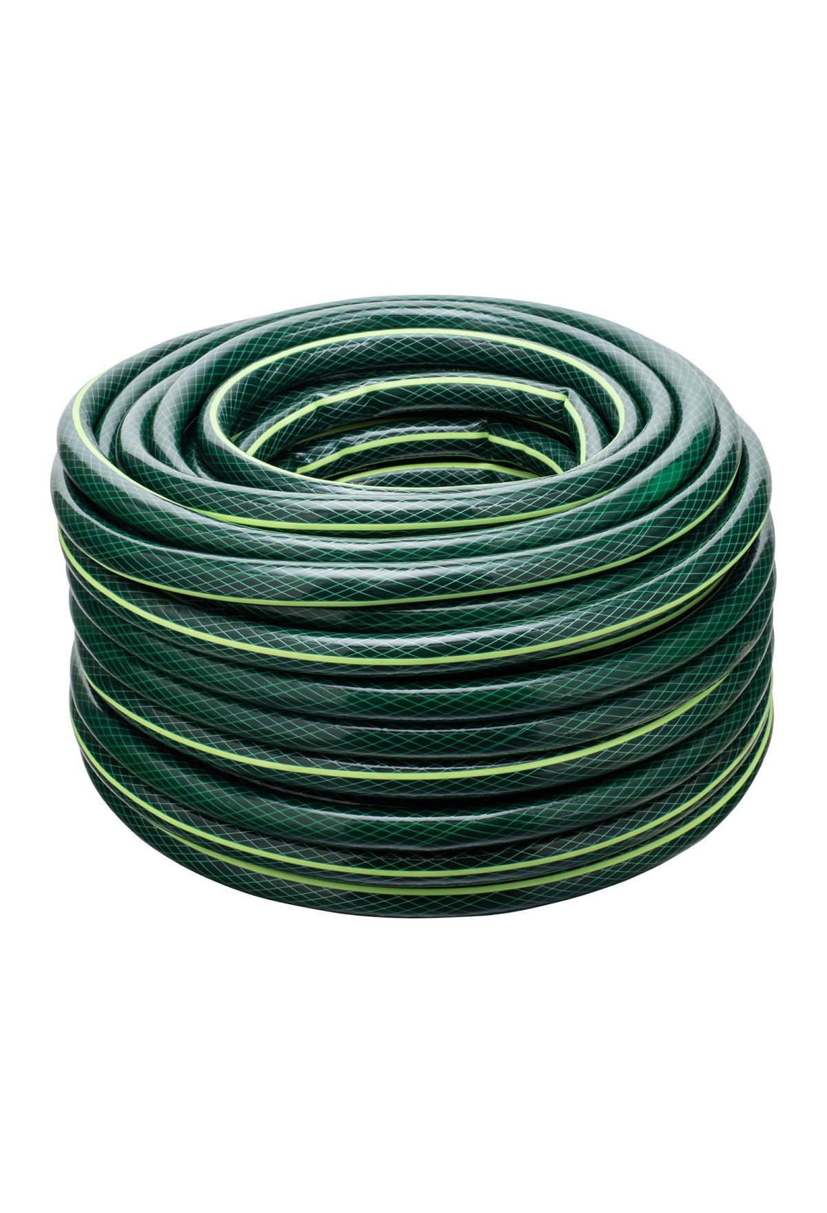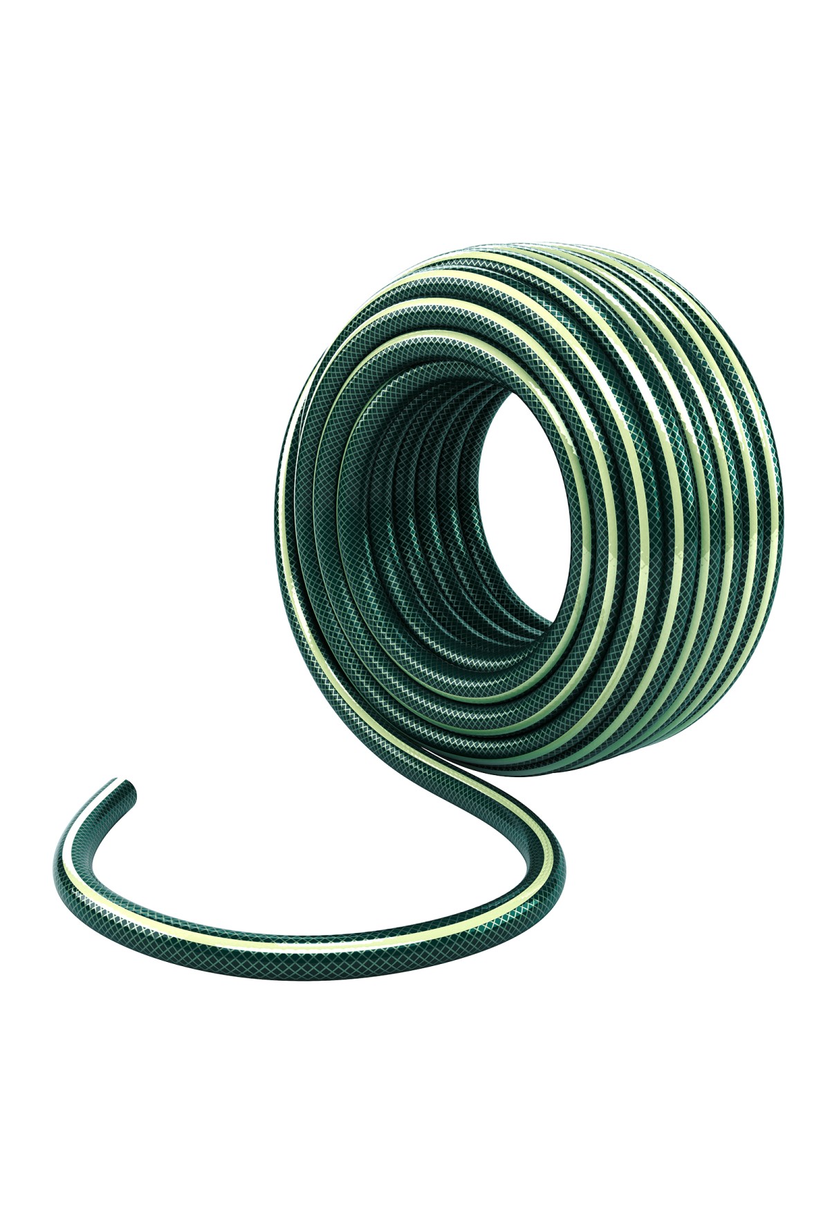 Шланг поливочный армированный из ПВХ 674770 длиной 50 м, с внутренним диаметром 3/4", позволяет регулярно проводить орошение растений на участке. Также может использоваться сотрудниками коммунальных служб в небольших скверах и парках. Длина 50 м достаточна для ухода за участком малой площади. Шланг выдерживает давление до 15 бар.