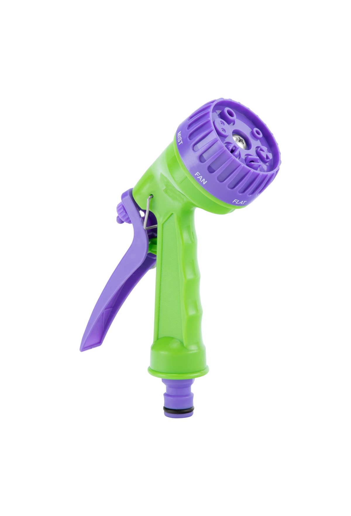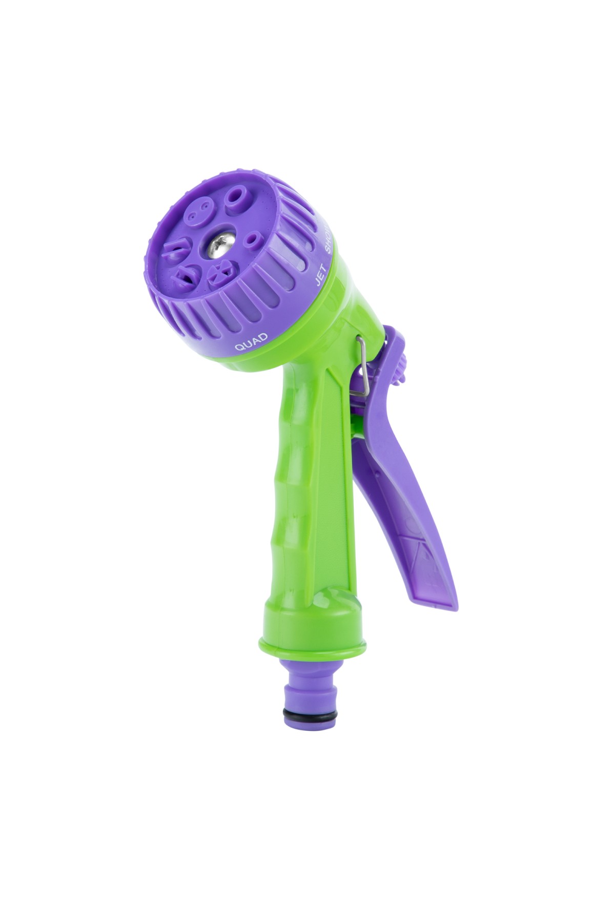 • Готовность к эксплуатации — в комплект поставки входит поливочный пистолет с 7 режимами работы: вертикальное/горизонтальное и конусное распыление, душ, туман, жесткая и плоская струя.