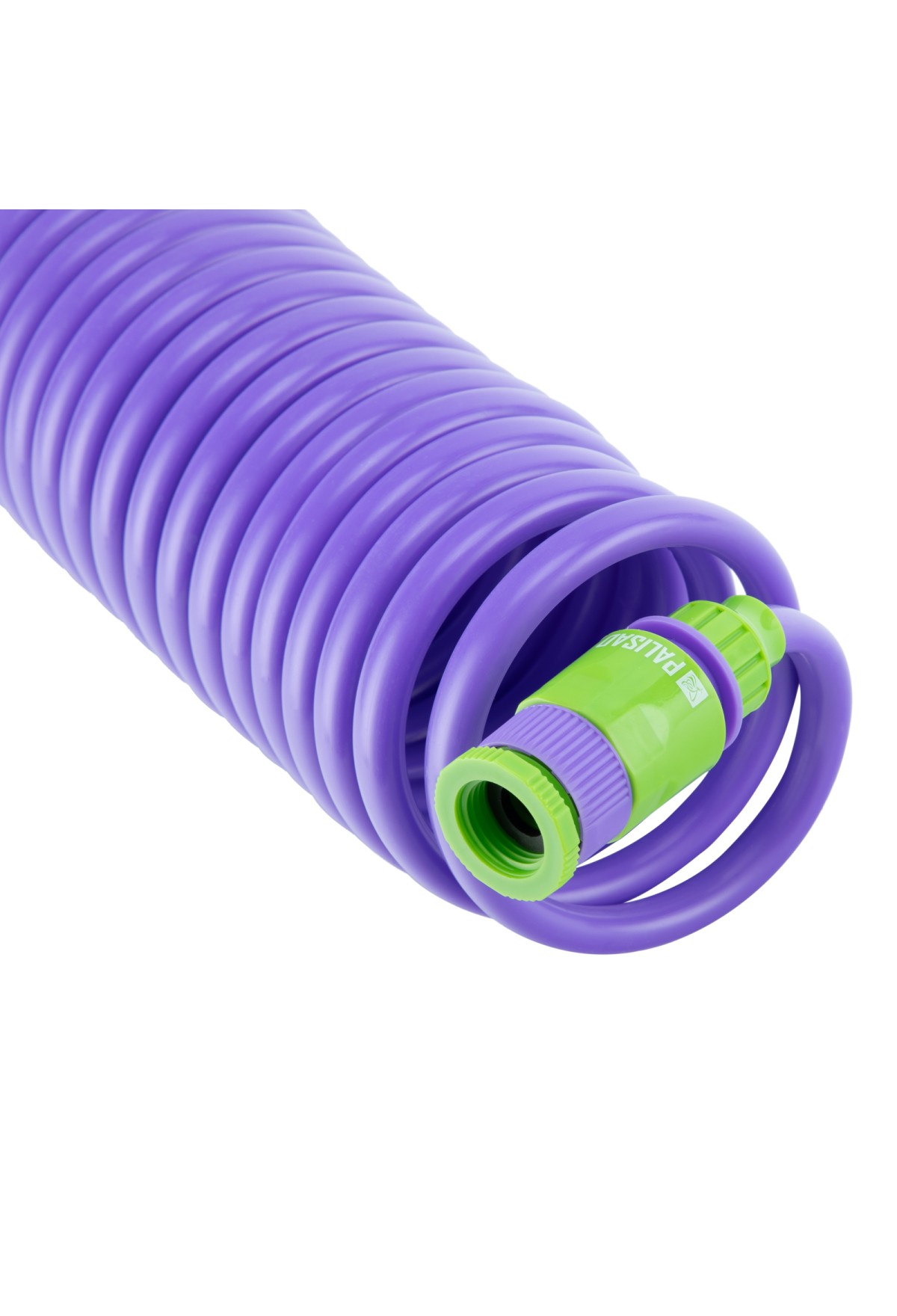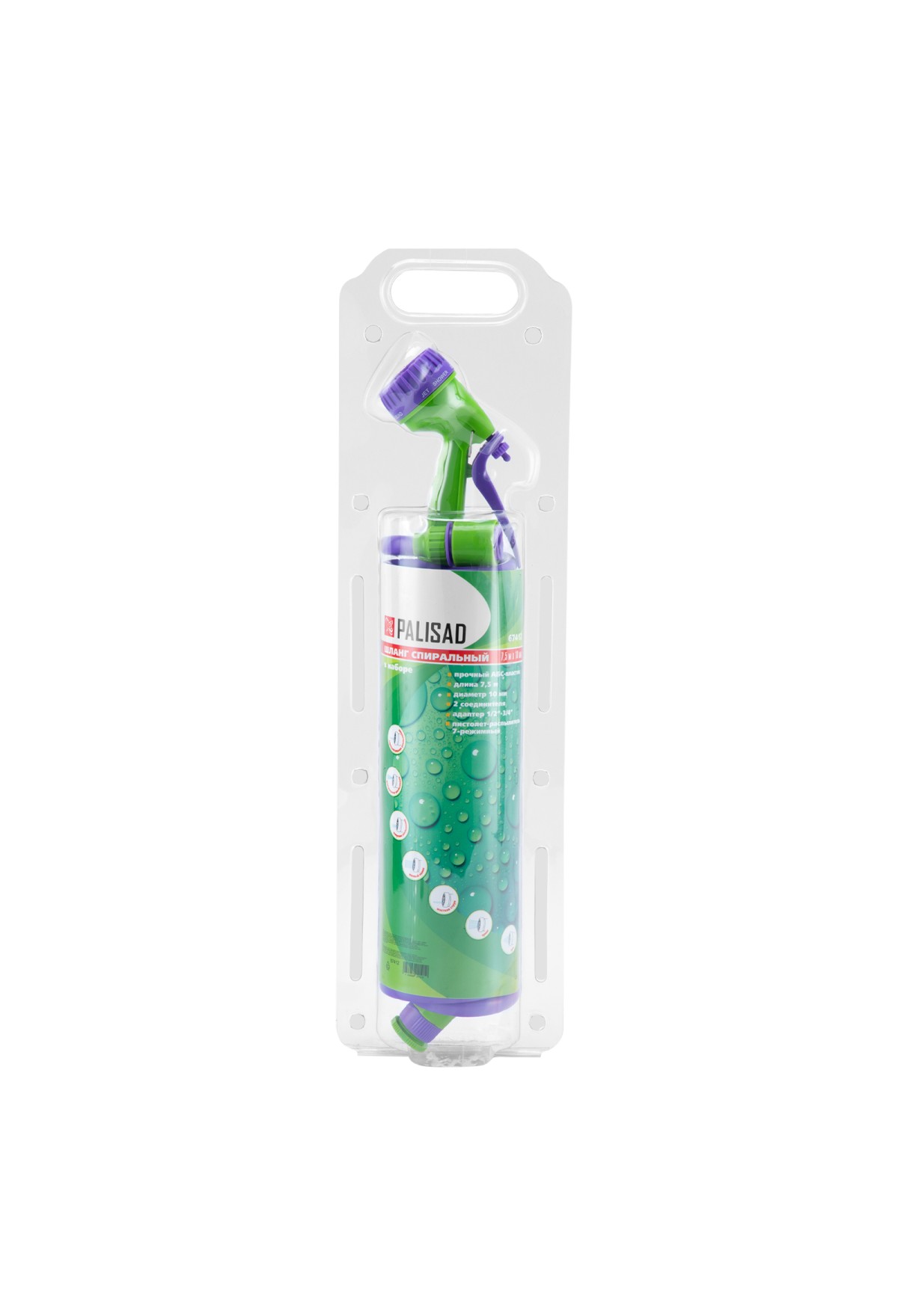 • Шланг спиральный, 7.5 м х 10 мм, пластмассовая фурнитура, адаптер 1/2-3/4, разбрызгиватель Palisad
