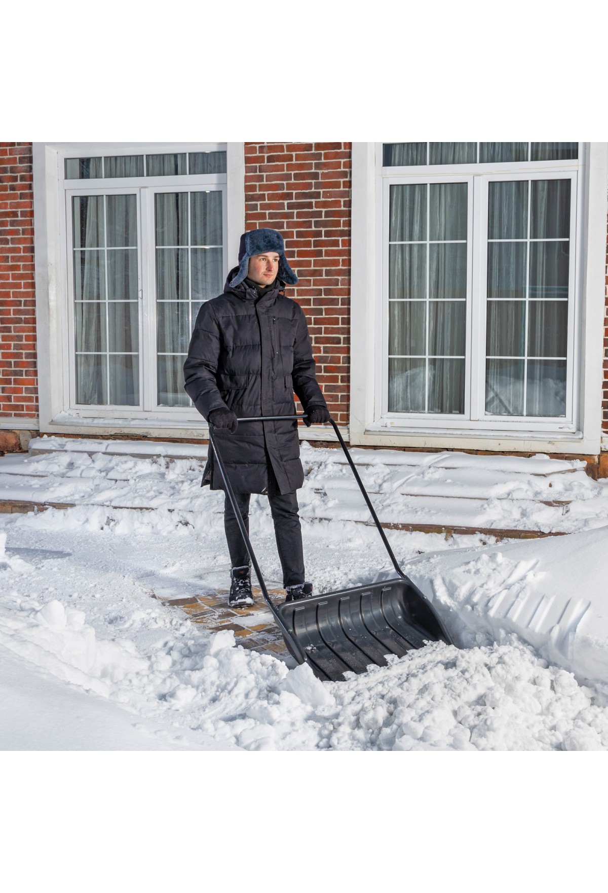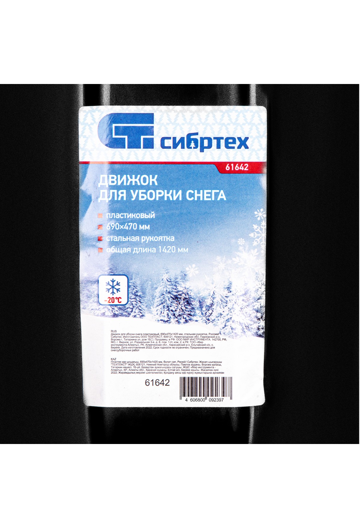 Движок для уборки снега пластиковый, 690х470х1420 мм, стальная рукоятка, Россия// Сибртех