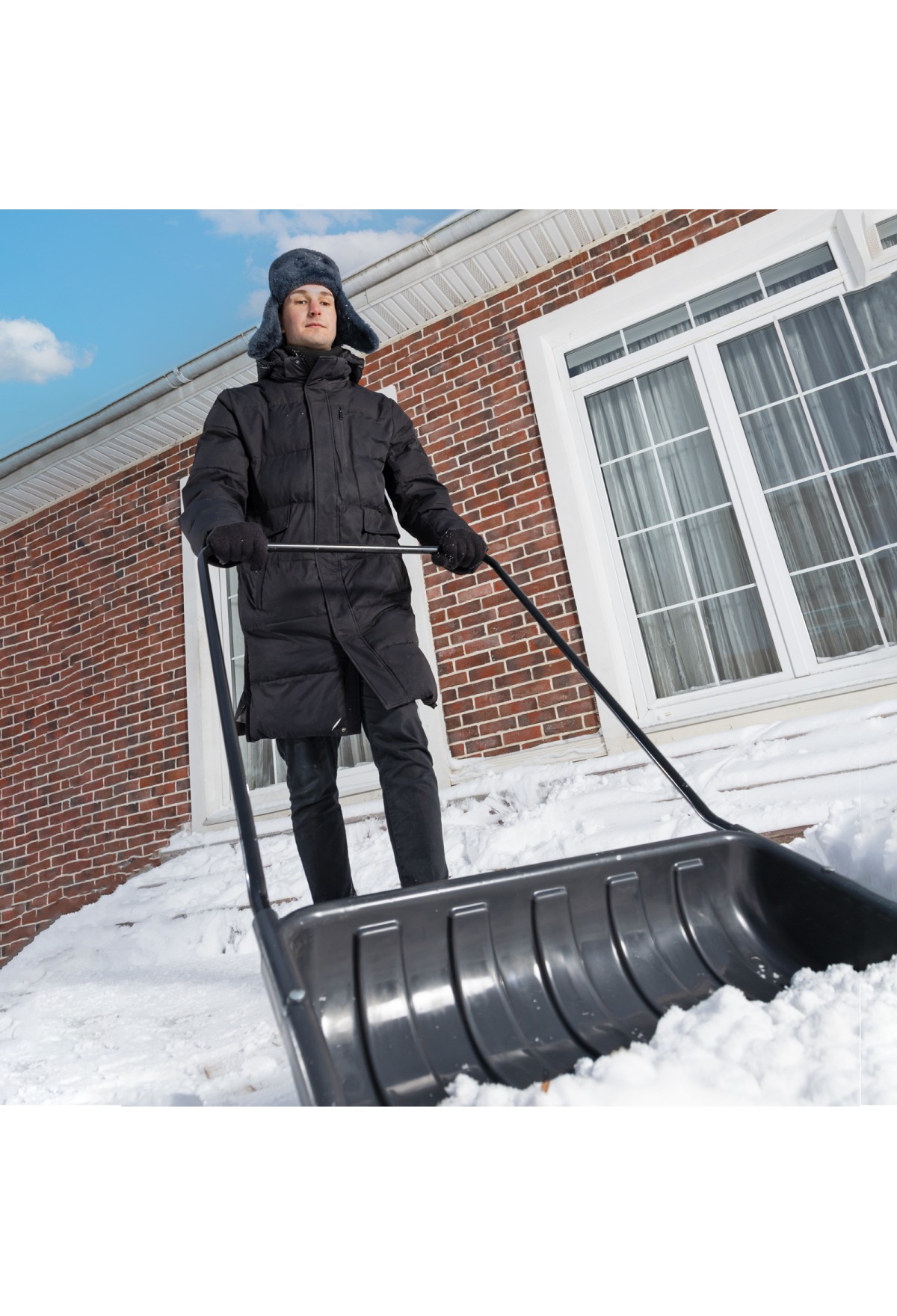 Движок для уборки снега Сибртех 61642 размером 690 x 470 x 1420 мм, со стальной рукояткой, позволяет быстро расчистить большую территорию, чем выгодно отличается от традиционной зимней лопаты. Углубленный ковш шириной 690 мм захватывает большое количество снега, упрощая и ускоряя работу. Движок будет полезен владельцам дачных участков и сотрудникам коммунальных служб.