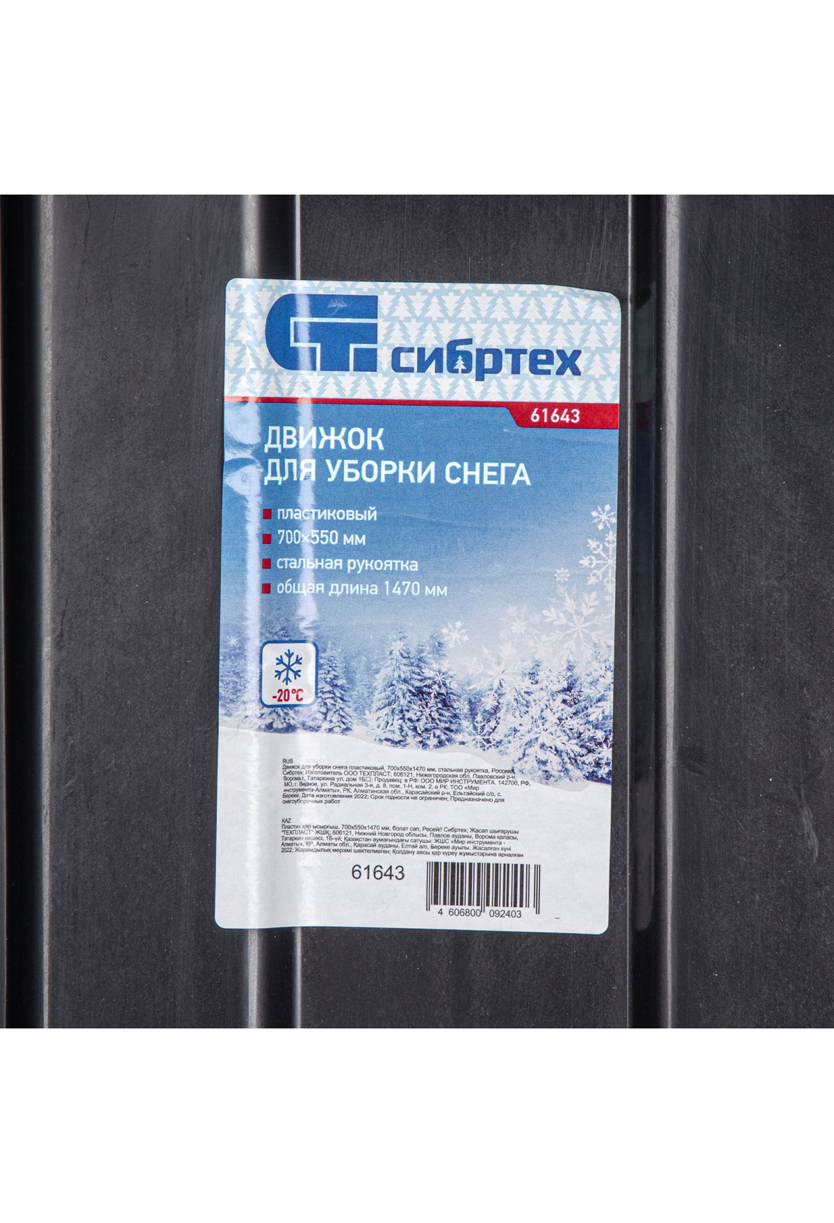• Движок для уборки снега пластиковый, 700х550х1470 мм, стальная рукоятка, Сибртех