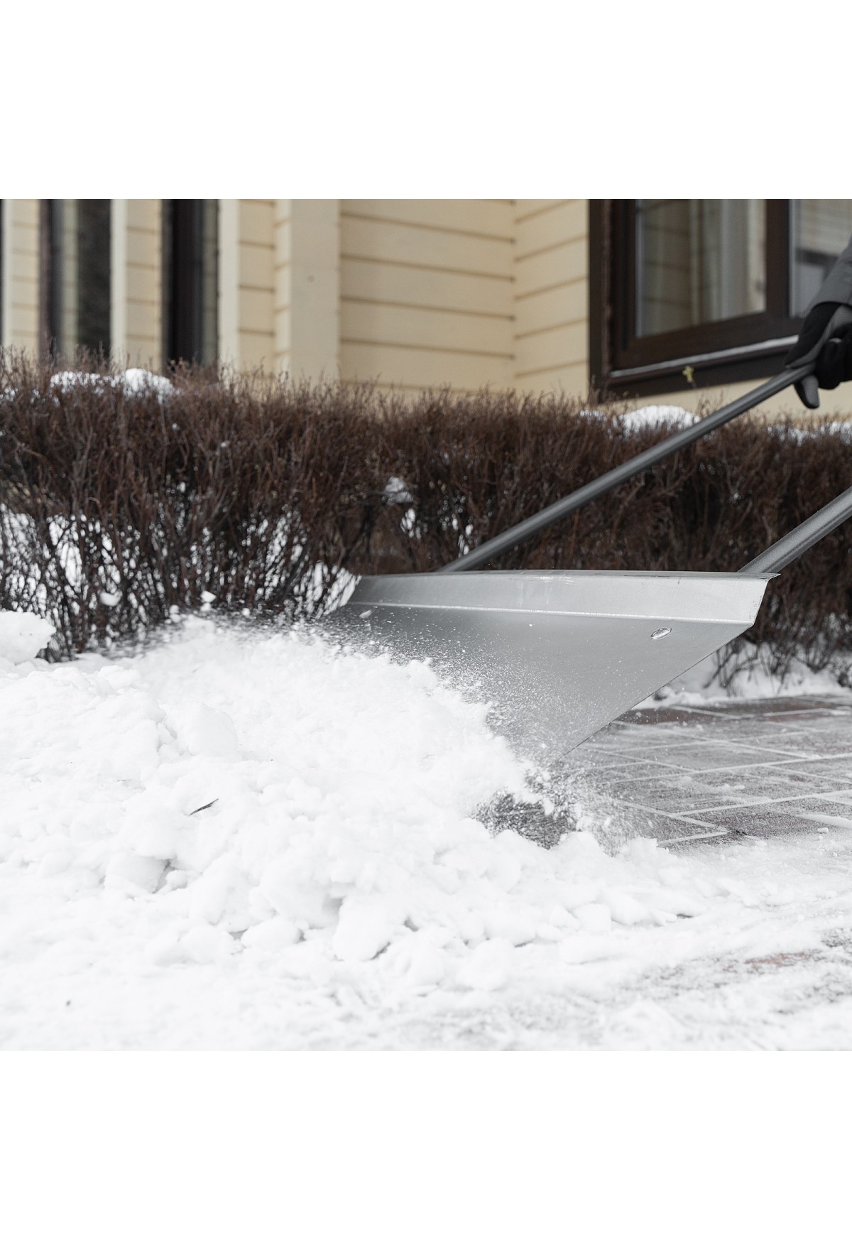 Стальной оцинкованный движок для уборки снега Сибртех 61520 размером 750 х 410 х 1100 мм, со стальной рукояткой, позволяет быстро расчищать участки большой площади. Широкая рабочая плоскость за один проход захватывает и сдвигает большое количество снега. Движок рассчитан на работу при температуре до -60 °C, поэтому может эксплуатироваться в суровых климатических условиях. Инструмент будет полезен для уборки пространства перед гаражом, придомовой территории или дачного участка.
