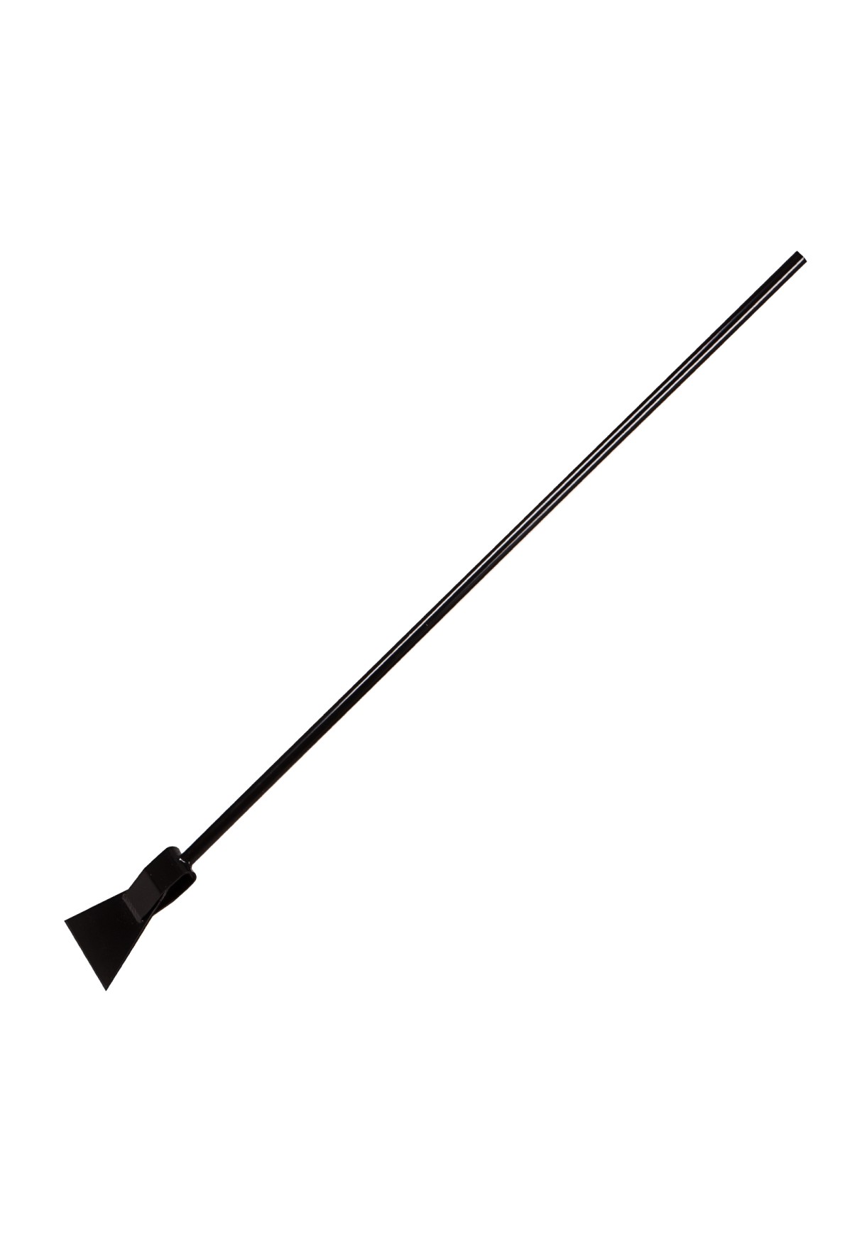 - Черенок выполнен из толстостенной стальной трубы, которая обеспечивает прочность конструкции.