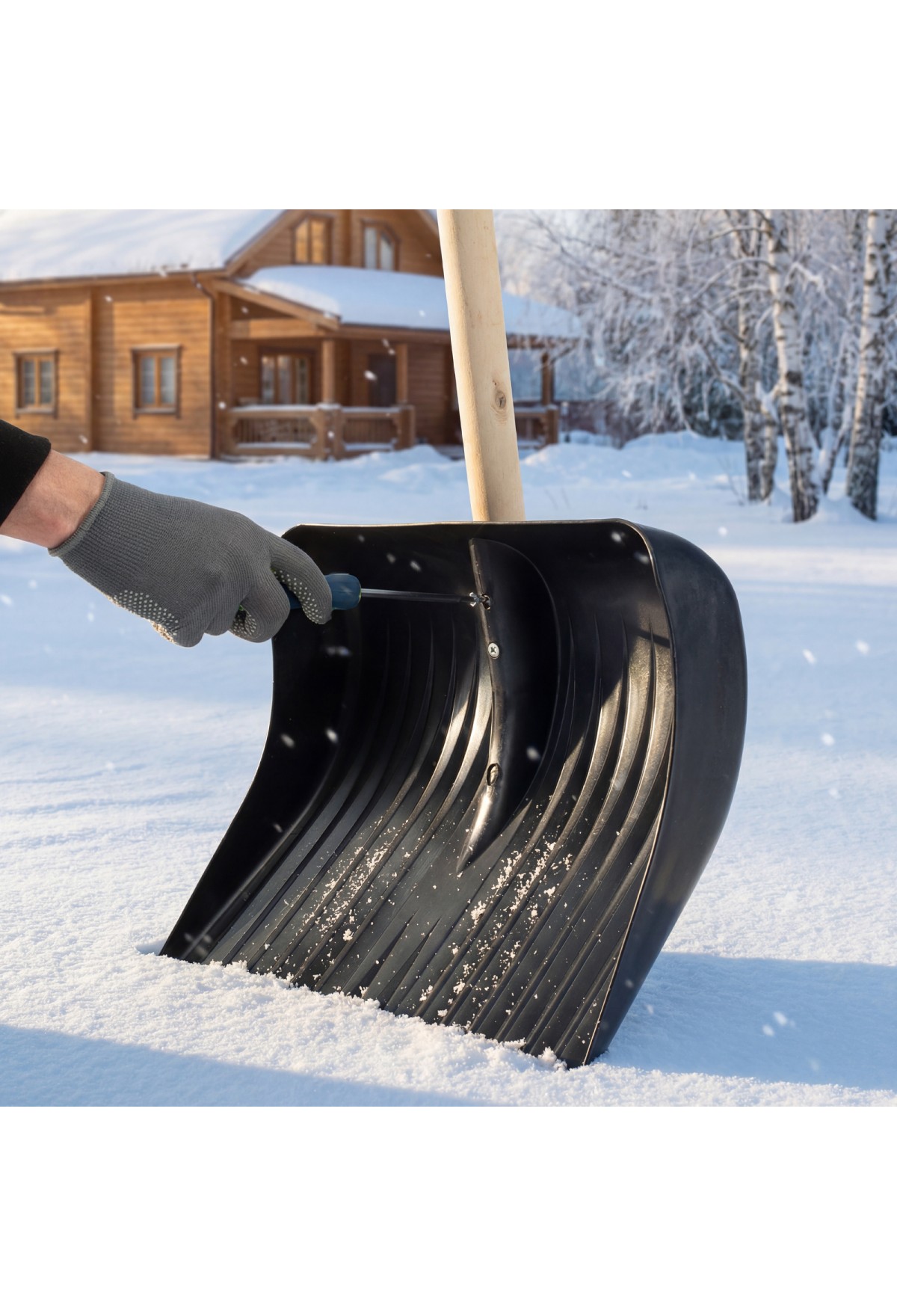 • Кромка ковша защищена от истирания алюминиевой окантовкой и легко проникает в плотный снег и наст.