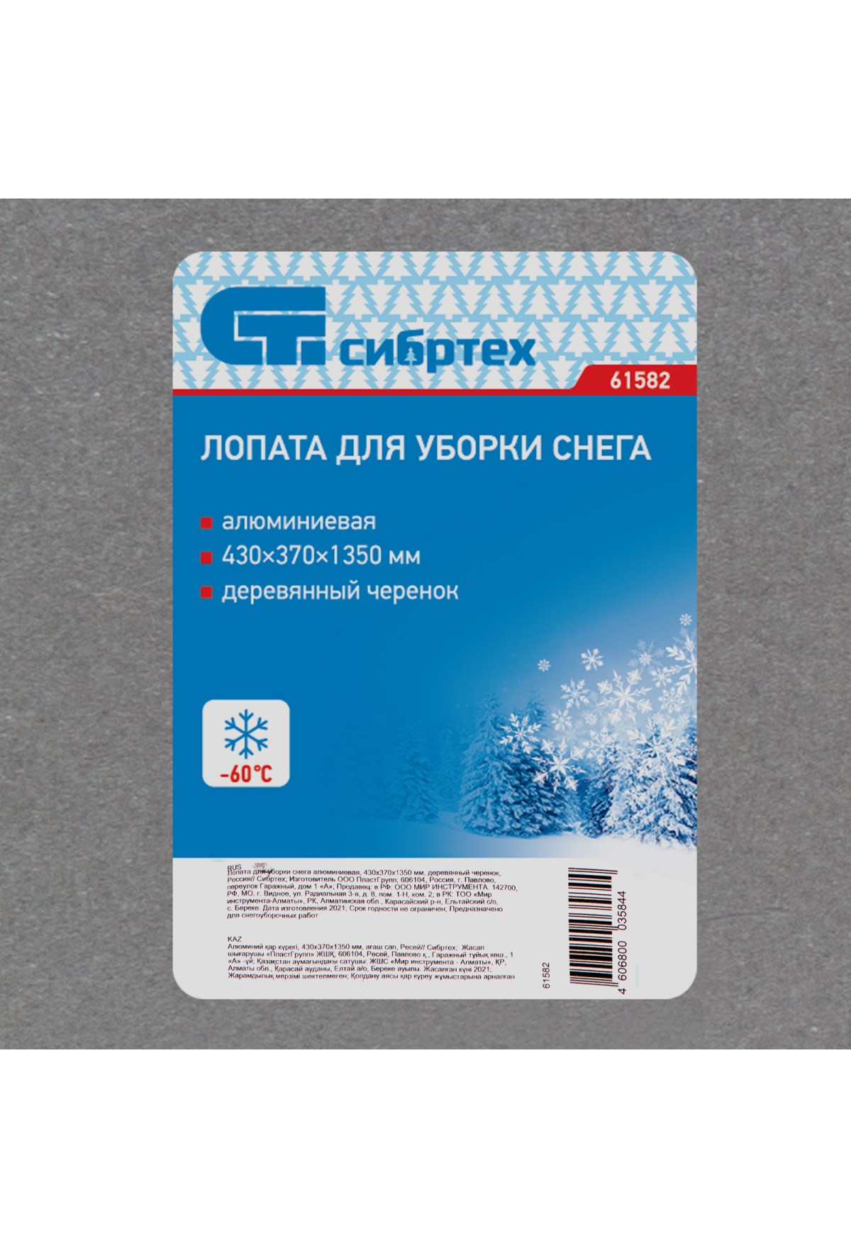 Алюминиевая лопата для уборки снега Сибртех 61582 с деревянным черенком, 430 х 370 х 1350 мм, — ручной инструмент, которым можно освободить от снежных заносов тротуар, садовые дорожки, подъездные пути к дому или гаражу. Длинный черенок позволяет работать, не нагружая позвоночник. Инструмент устойчив к низким температурам и выдерживает мороз до -60 градусов.