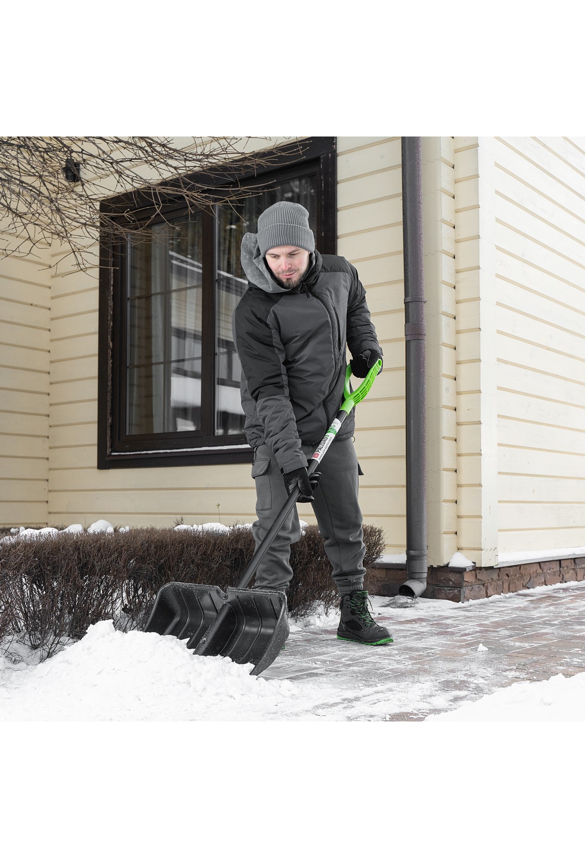 - Комфорт при длительной работе — лопата оснащена дополнительной пластиковой рукояткой с выемками под пальцы, которая обеспечивает надежный хват.