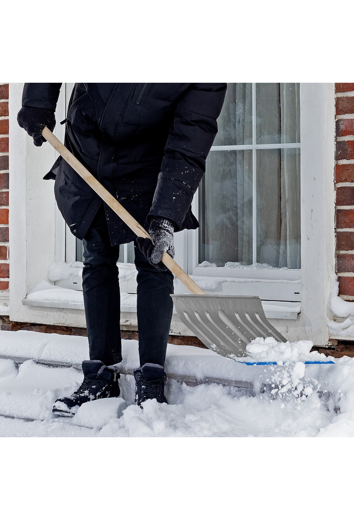 Нет в наличии Код товара: VR6-61490 Лопата для уборки снега тротуарная, алюминиевая, 600 х 400 х 1420, деревянный черенок, Сибртех