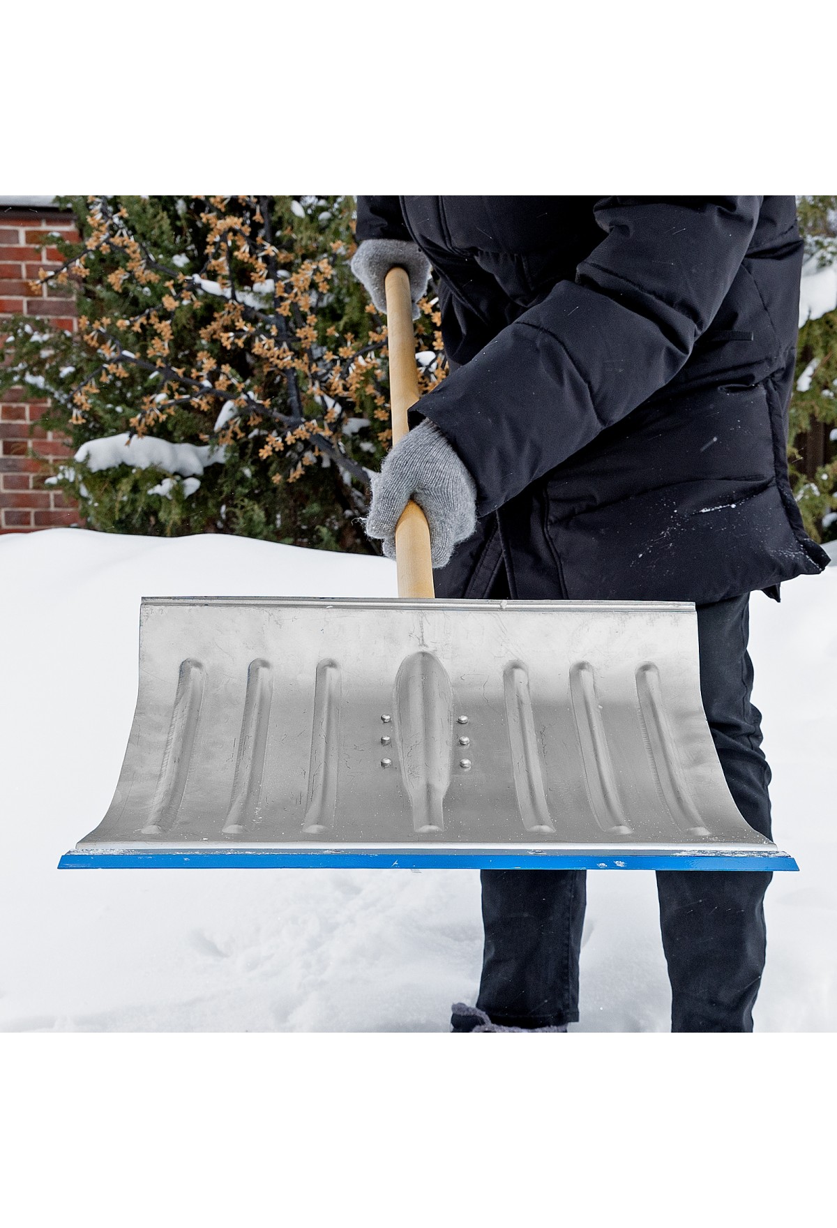 Лопата для уборки снега тротуарная, алюминиевая, 600 х 400 х 1420, деревянный черенок, Сибртех