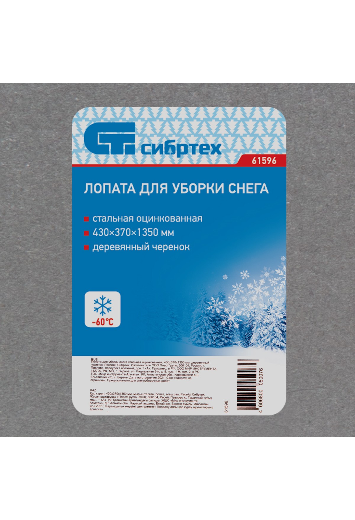 Технические характеристики Лопата для уборки снега стальная оцинкованная, 430 х 370 х 1350 мм, деревянный черенок, Россия, Сибртех
