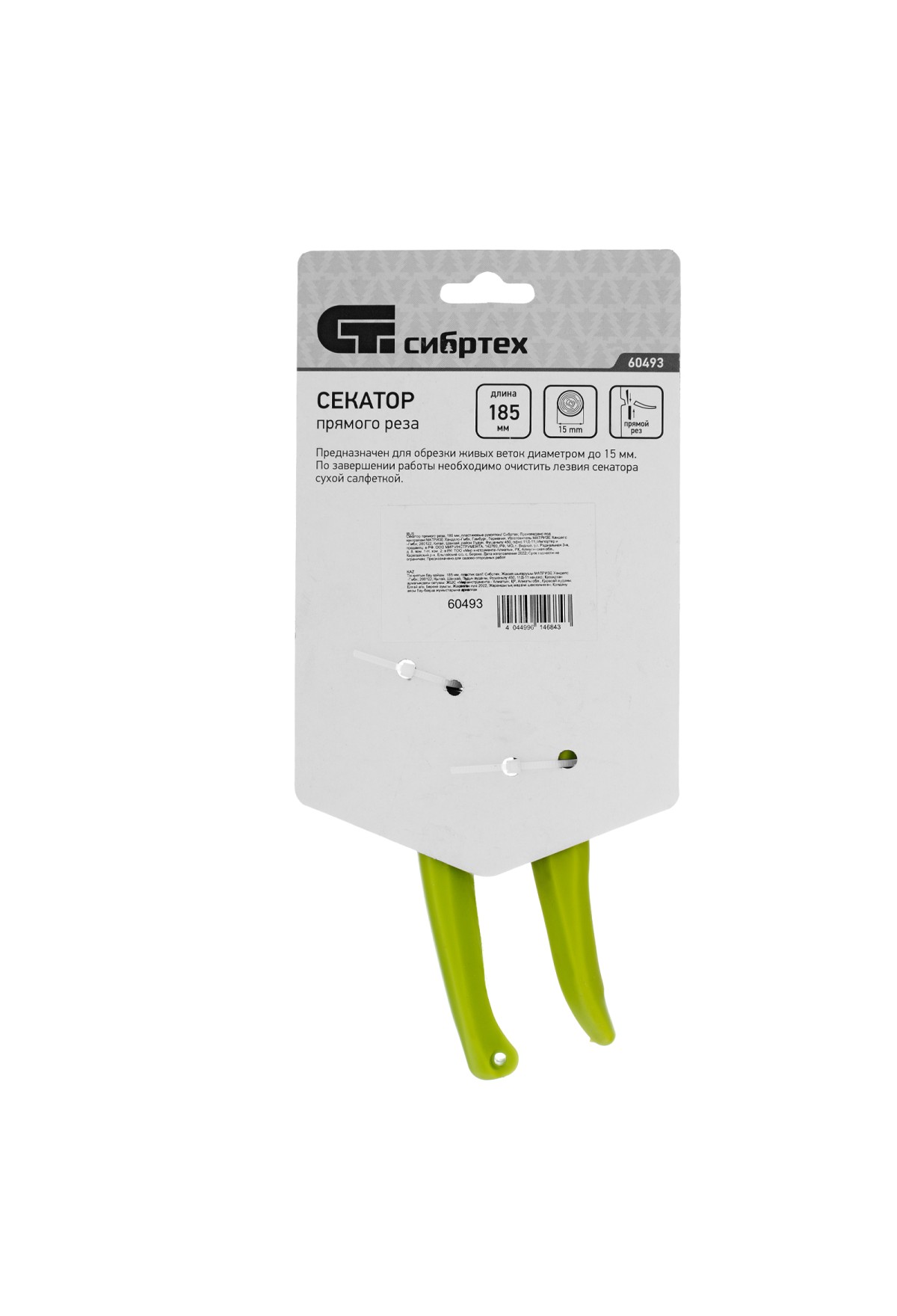 Секатор прямого реза, 185 мм, пластиковые рукоятки, Сибртех