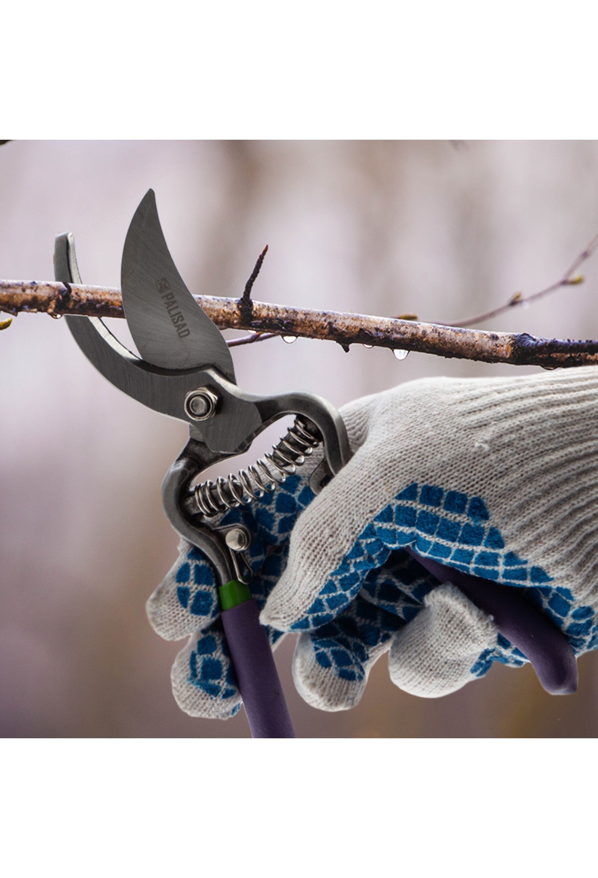 Секатор прямого реза Palisad 60561 общей длиной 200 мм, с обрезиненными рукоятками, используется для обрезки живых веток диаметром до 25 мм. Движущиеся в параллельных плоскостях лезвия производят гладкий и ровный срез, сводя к минимуму потерю сока растением. Регулировочный винт позволяет отрегулировать плотность смыкания лезвий. Секатор пригодится для работы на даче и в саду.