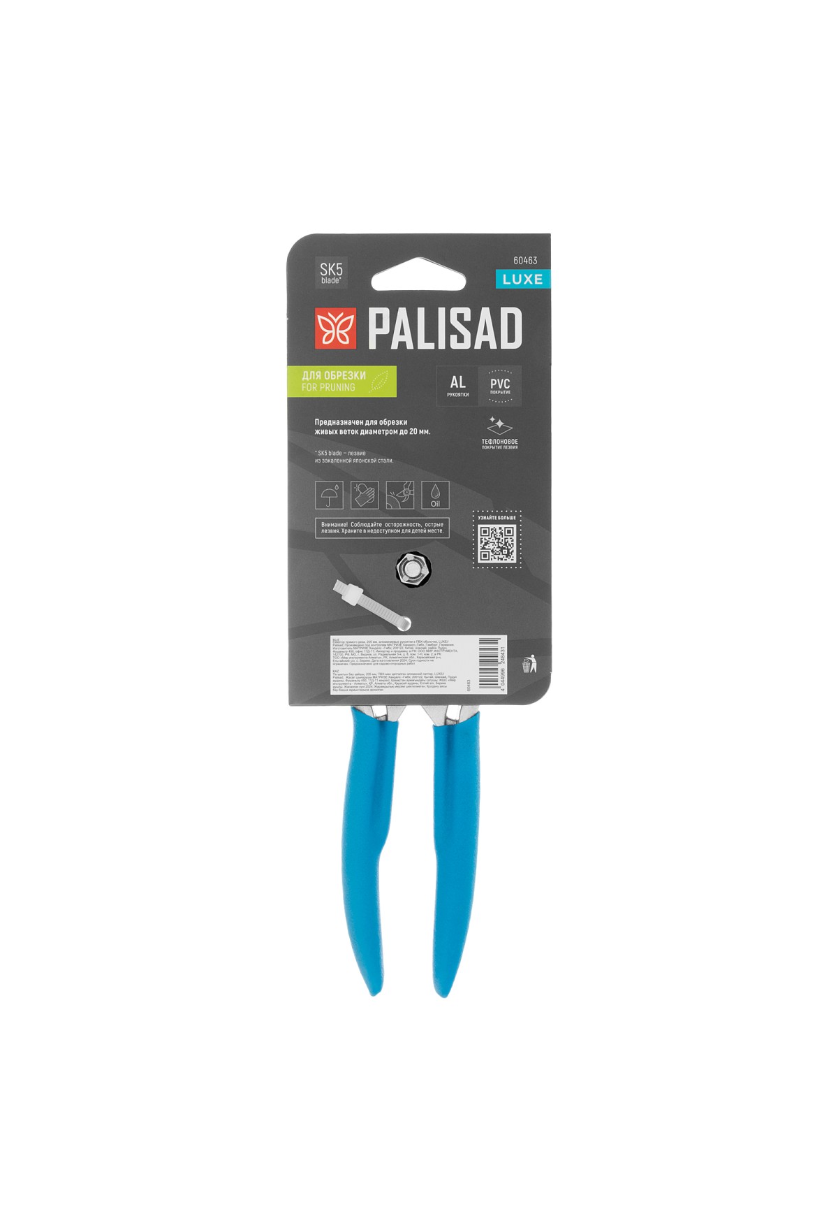 Секатор прямого реза Palisad LUXE 60463 длиной 205 мм, с алюминиевыми рукоятками в ПВХ-оболочке, предназначен для обрезки живых веток толщиной до 20 мм. Тефлоновое покрытие режущего лезвия уменьшает трение, облегчая рез. Инструмент используется для ухода за растениями, будет полезен владельцам дачных участков.
