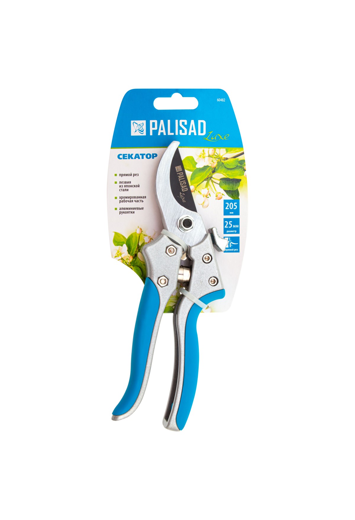 Секатор прямого реза Palisad LUXE 60482 длиной 205 мм, с металлическими обрезиненными рукоятками, используется для обрезания живых веток диаметром до 25 мм, поэтому будет полезен на загородном участке. Подходит для ухода за комнатными растениями, формирования крон бонсай и создания топиарных скульптур. Рабочее лезвие чисто отсекает ветку, поскольку движется в плоскости, параллельной опорному лезвию. В случае ослабления примыкания лезвий их можно отрегулировать при помощи винта.