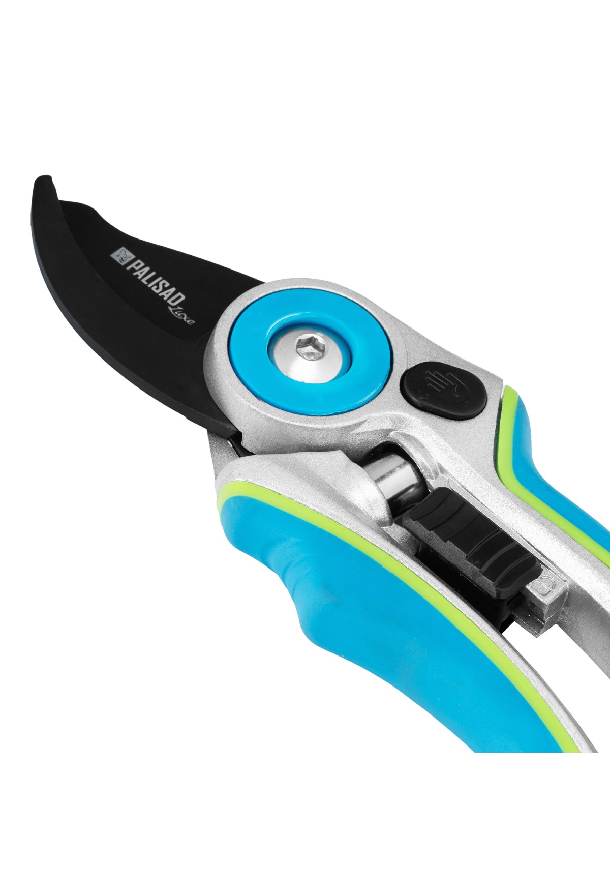 Секатор прямого реза Palisad LUXE 60474 длиной 210 мм, с регулировкой захвата, с алюминиевыми рукоятками, используется для обрезки живых веток диаметром до 20 мм. Лезвия расположены в параллельных плоскостях, поэтому срез получается гладким и ровным, а потеря сока растением минимальна. Увеличенный шарнир повышает усилие сжатия на 10%, что облегчает работу. Секатор упрощает уход за растениями на загородном участке, а также оформление бонсай и топиариев.
