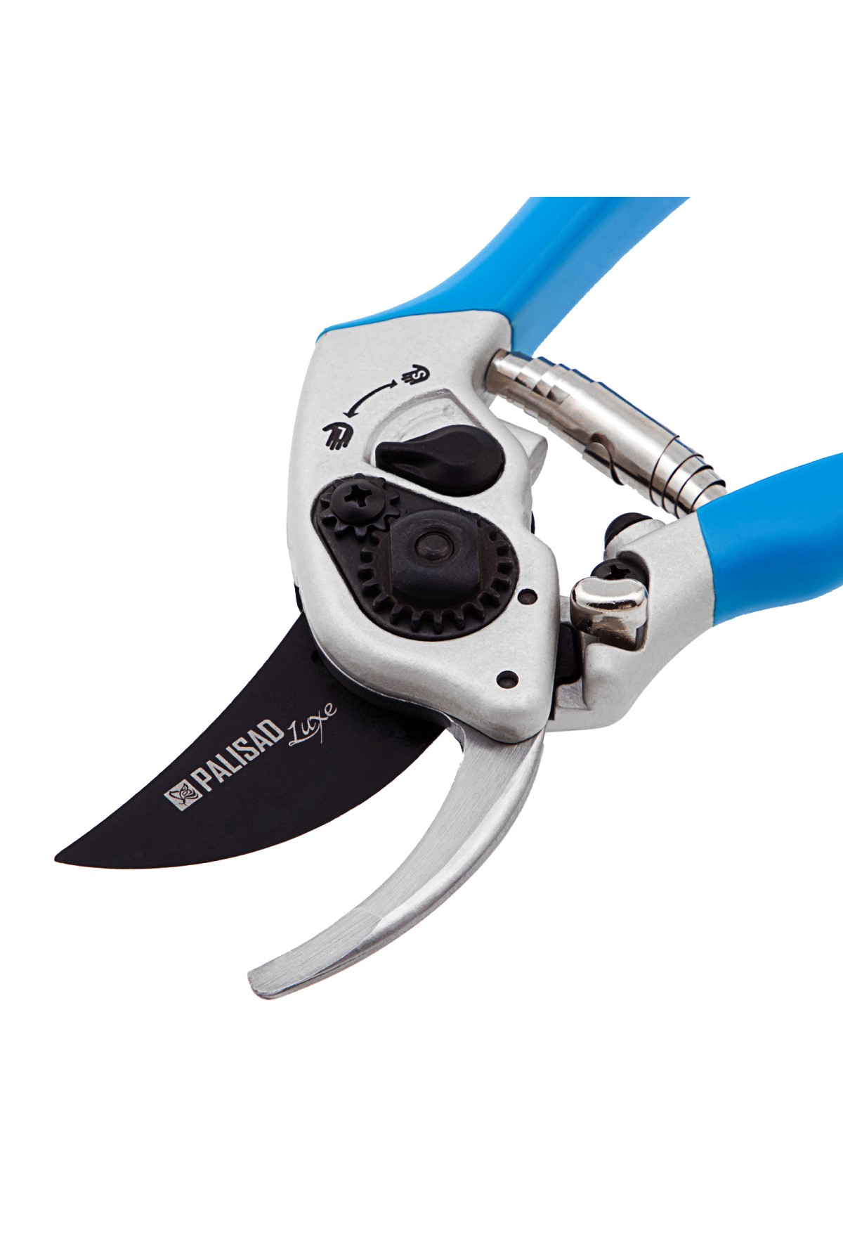 - Удобная работа с ветками разного диаметра — переключатель «большая-малая рука» позволяет регулировать степень раскрытия рукояток.