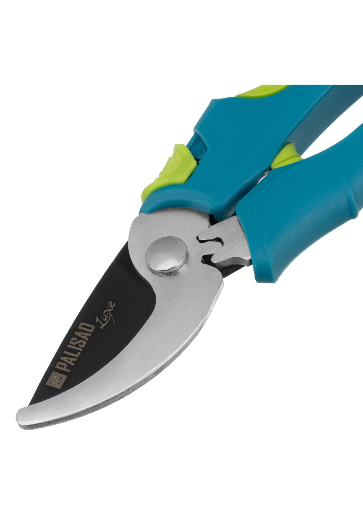 Секатор прямого реза Palisad LUXE 60477 длиной 215 мм, с двухкомпонентными рукоятками, — инструмент для обрезки живых веток диаметром до 18 мм. Рез получается ровным и чистым, поскольку лезвия перемещаются в параллельных плоскостях. При этом вред растению наносится незначительный. Рабочие части выполнены из высококачественной японской инструментальной стали SK-5 и характеризуются максимальной твердостью и износостойкостью. Двухкомпонентные рукоятки из полипропилена не боятся ультрафиолета, поэтому секатор прослужит долго. Инструмент будет полезен для ухода за растительностью на даче и в саду.