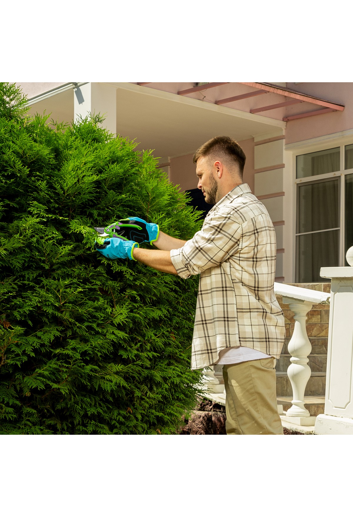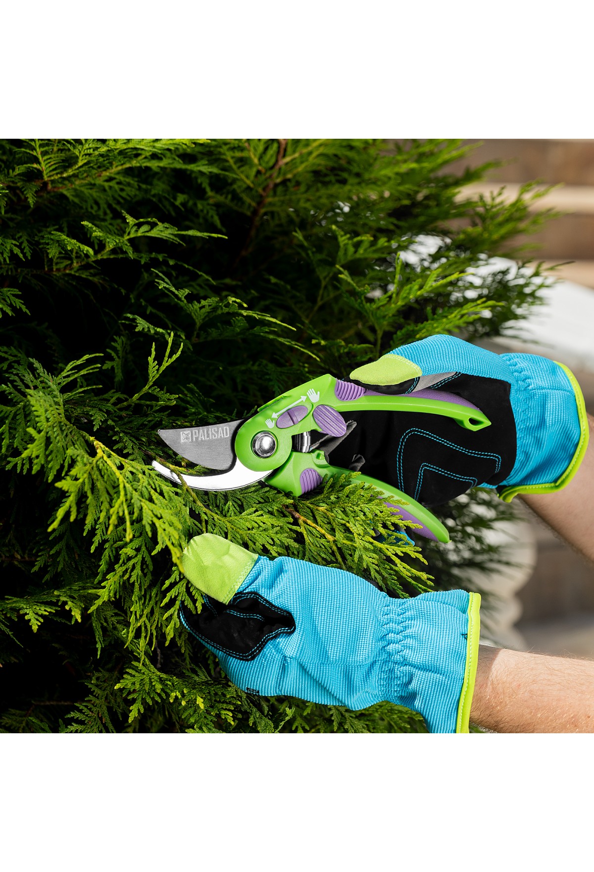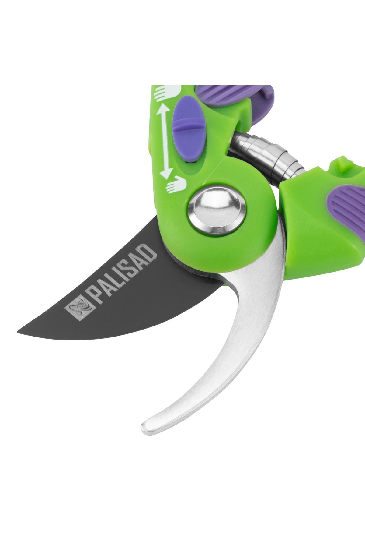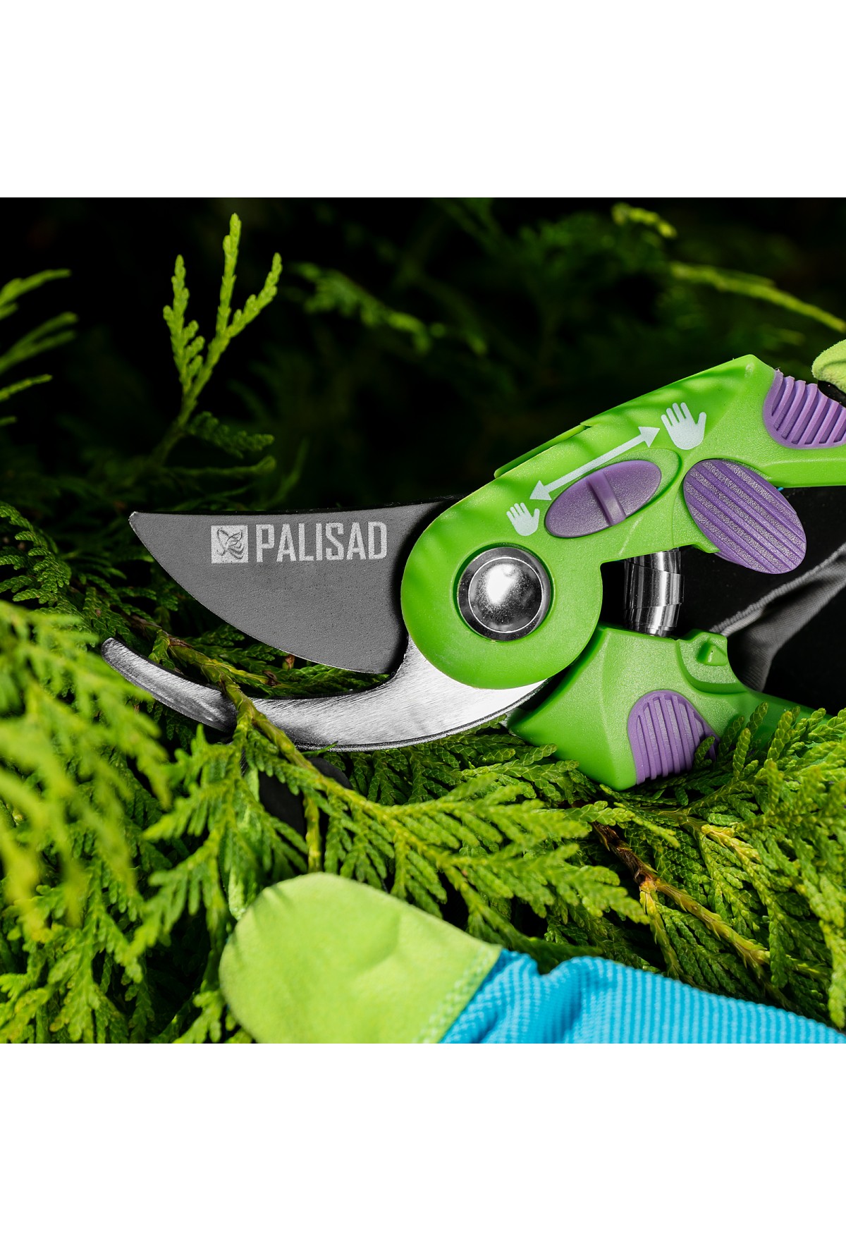 Секатор прямого реза Palisad 60485 длиной 215 мм, с регулировкой захвата и двухкомпонентными рукоятками, позволяет срезать живые ветки диаметром до 18 мм. Режущее лезвие, двигающееся в параллельной плоскости относительно опорного, производит чистый срез, причиняя растению минимальный ущерб. Тефлоновое покрытие уменьшаеттрение о древесину, что облегчает работу. Инструмент будет полезен на даче и в саду.