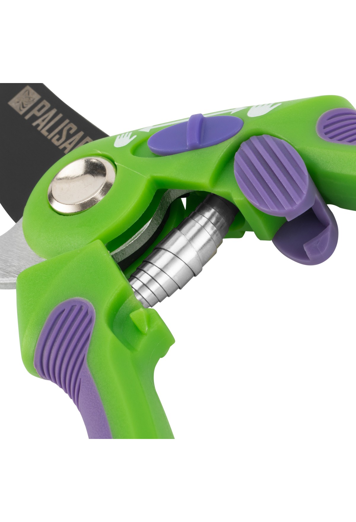 - Безопасное хранение и транспортировка — фиксатор удерживает лезвия в сомкнутом положении, не давая им самопроизвольно раскрыться.