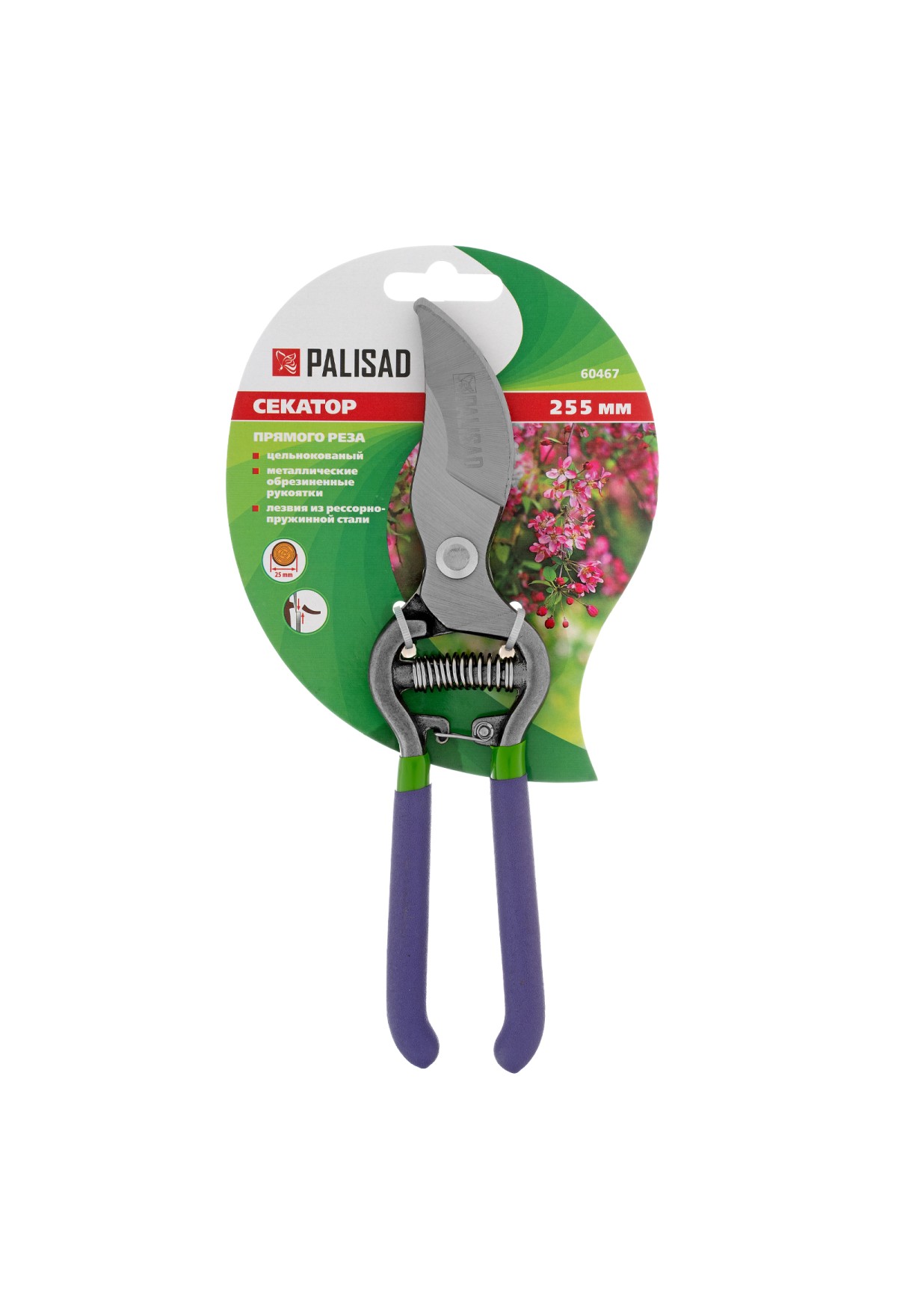 Секатор прямого реза, 255 мм, цельнокованый, металлические обрезиненные рукоятки, Palisad