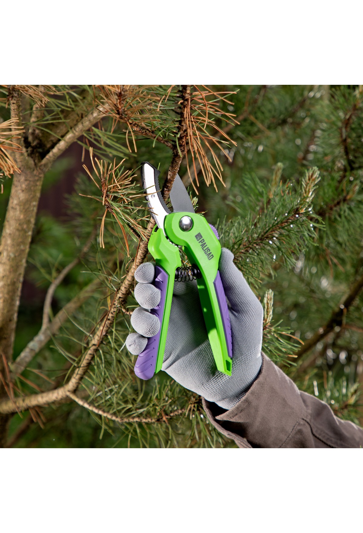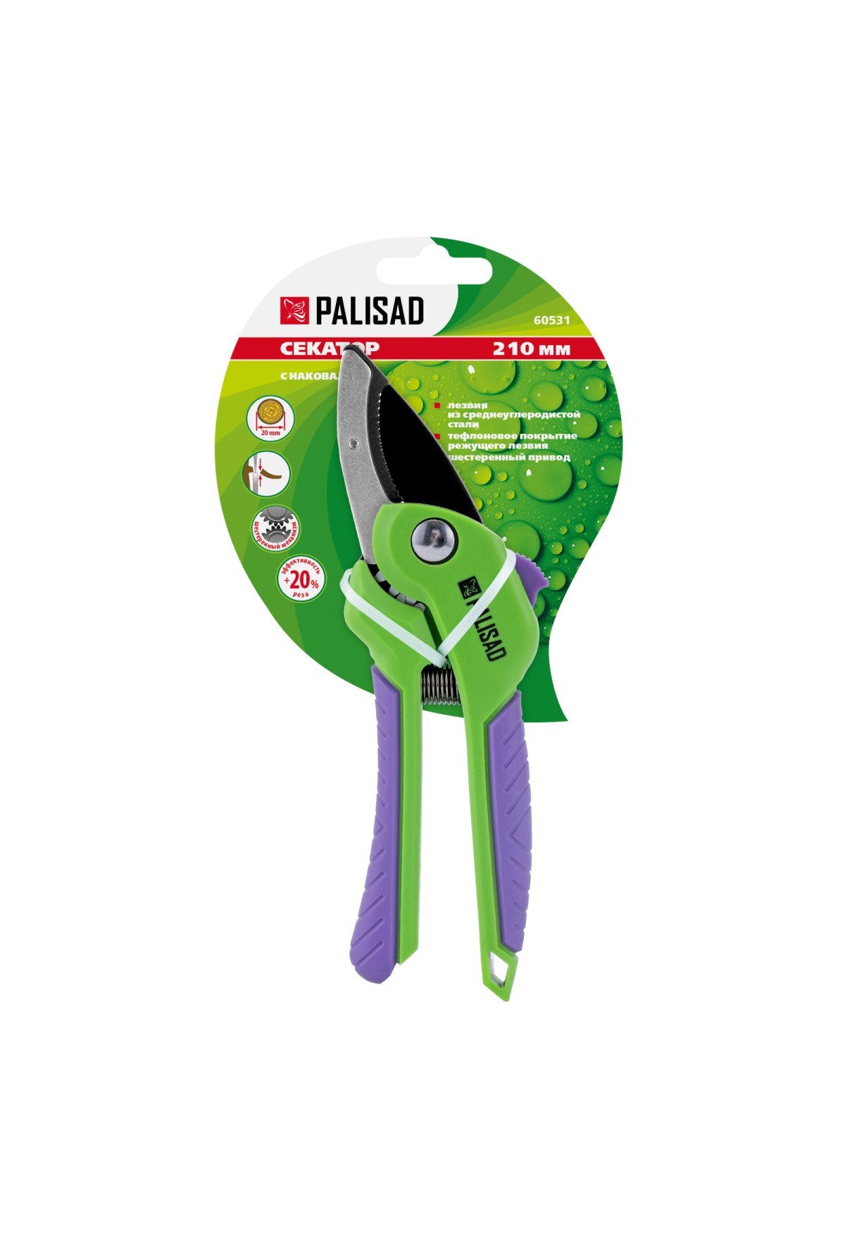 Секатор с наковальней Palisad 60531 длиной 210 мм, с шестеренным приводом и двухкомпонентными рукоятками, служит для щадящей обрезки сухих и увядших веток толщиной до 20 мм. С этой задачей он успешно справляется благодаря шестеренному приводу, увеличивающему усилие сжатия на 15%. Тефлоновое покрытие уменьшает трение лезвия, облегчая рез. Регулировочный винт позволяет контролировать плотность смыкания лезвий. Инструмент будет полезен на дачном участке.