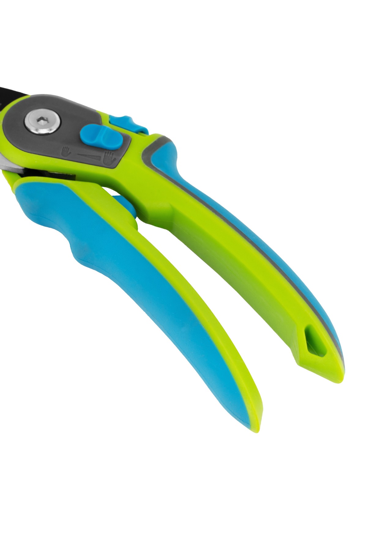 - Опорная наковальня с зубчатой поверхностью облегчает захват и фиксацию веток, в том числе гладких.
